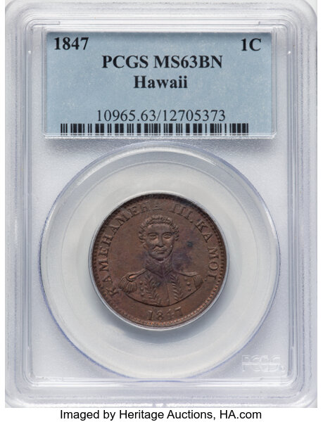1847 Hawaii 1c PCGS MS63 BN