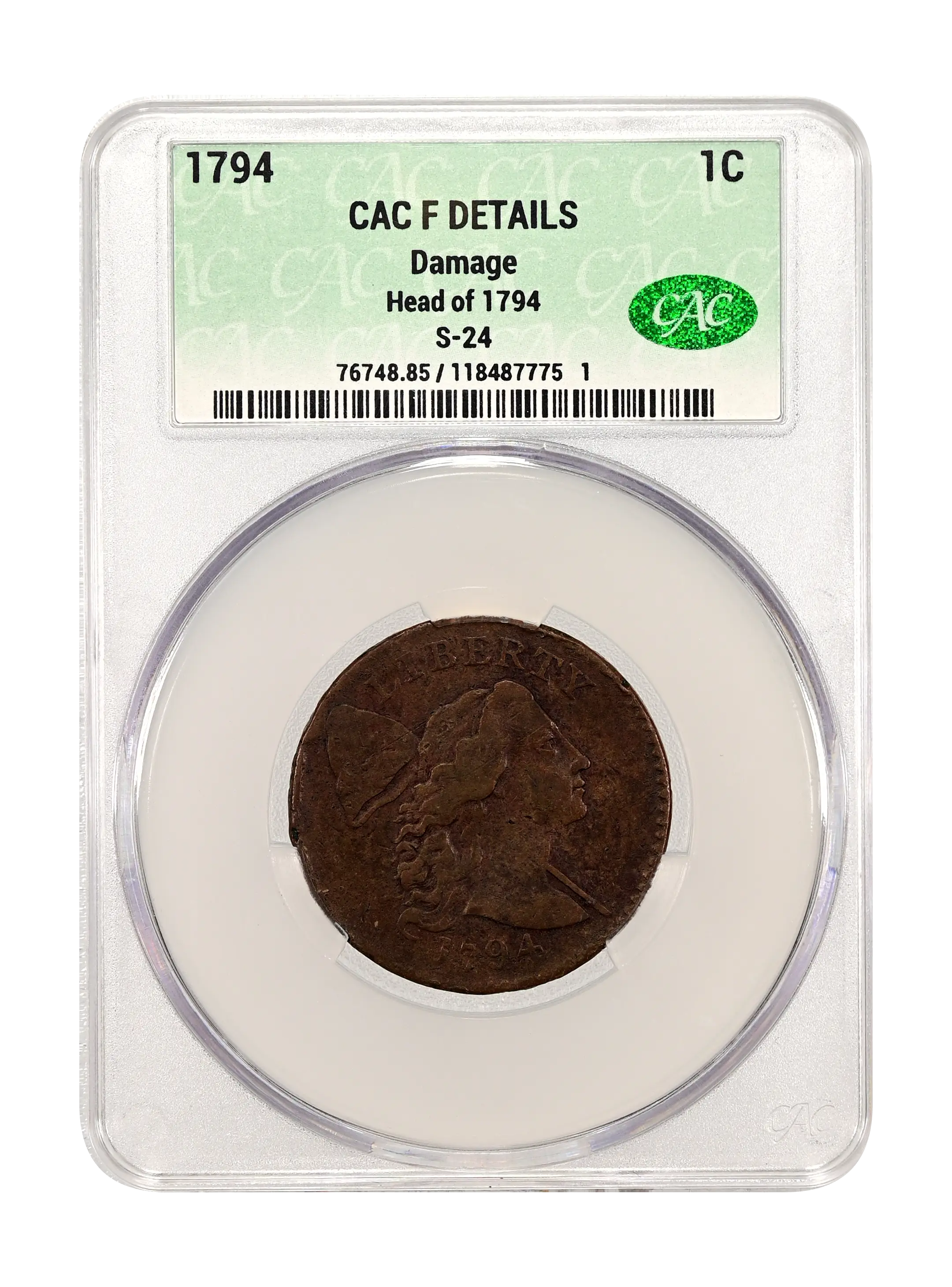 1794 Head of 1794 1c S-24 BN CAC F DETAILS