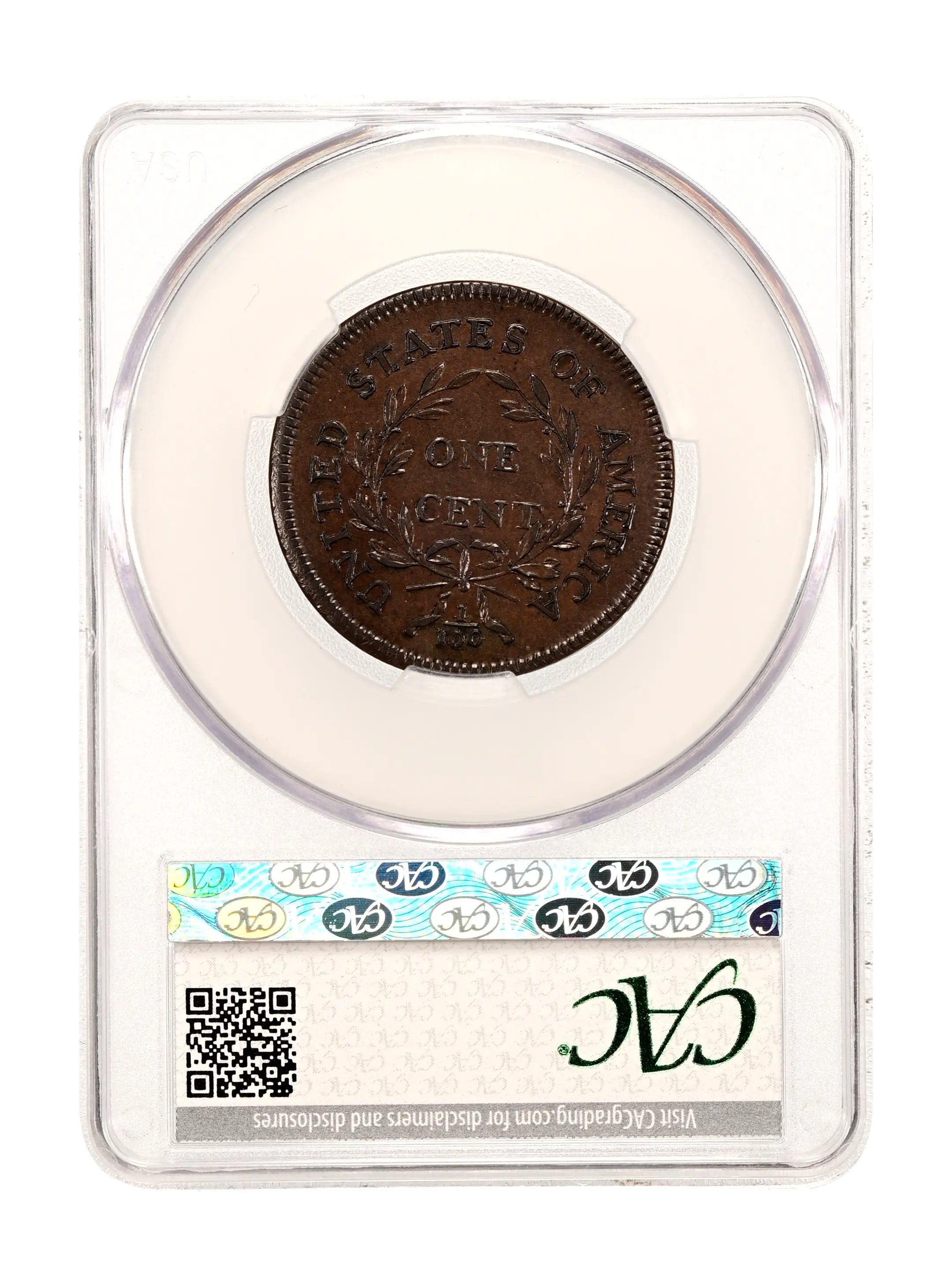 1796 1C Liberty Cap, S-81, B-2, R.3, MS64 Brown NGC. Our EAC Grade AU55....