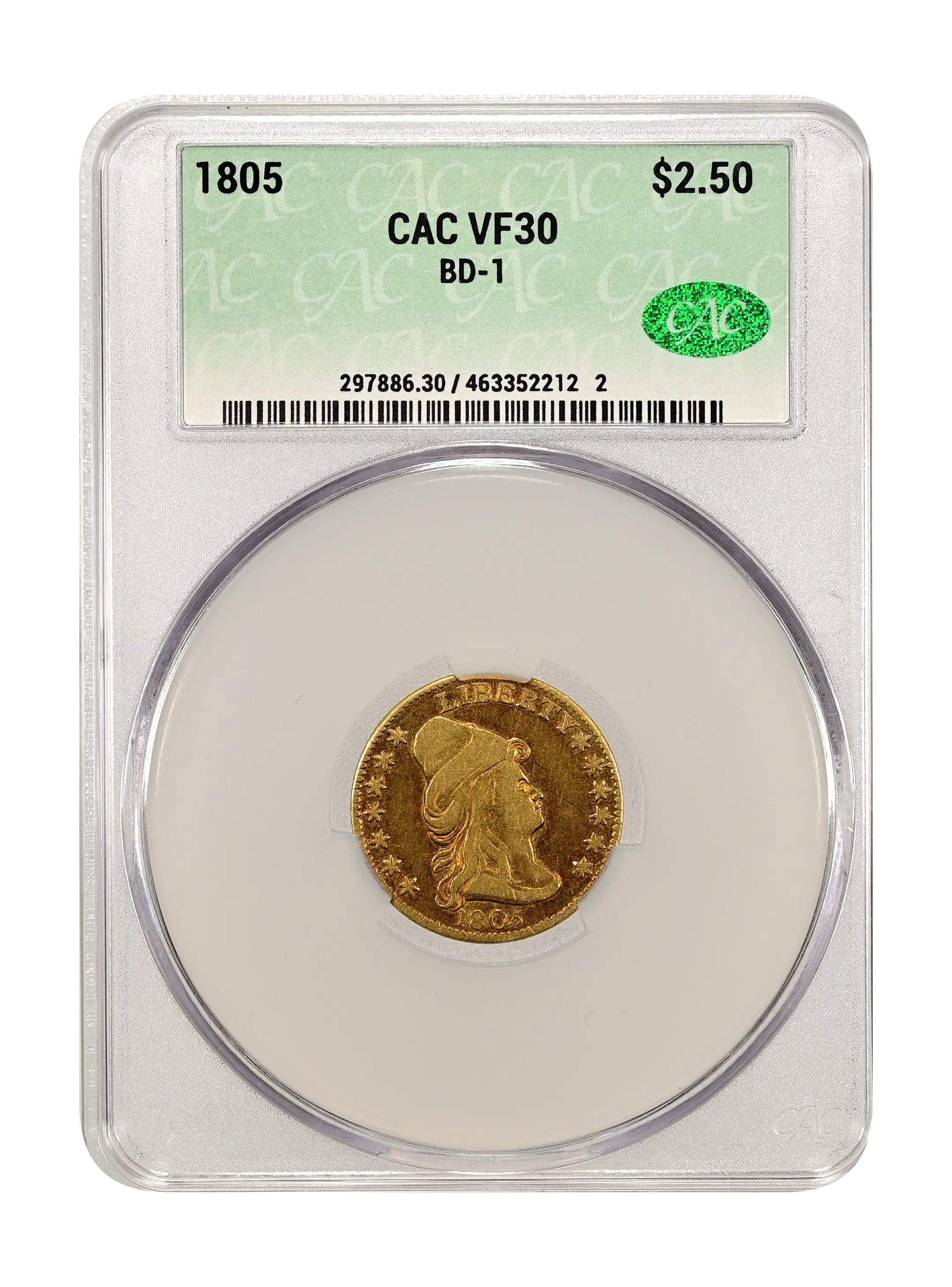 1805 Capped Bust Right Quarter Eagle. BD-1. Rarity-4. MS-63 (PCGS).