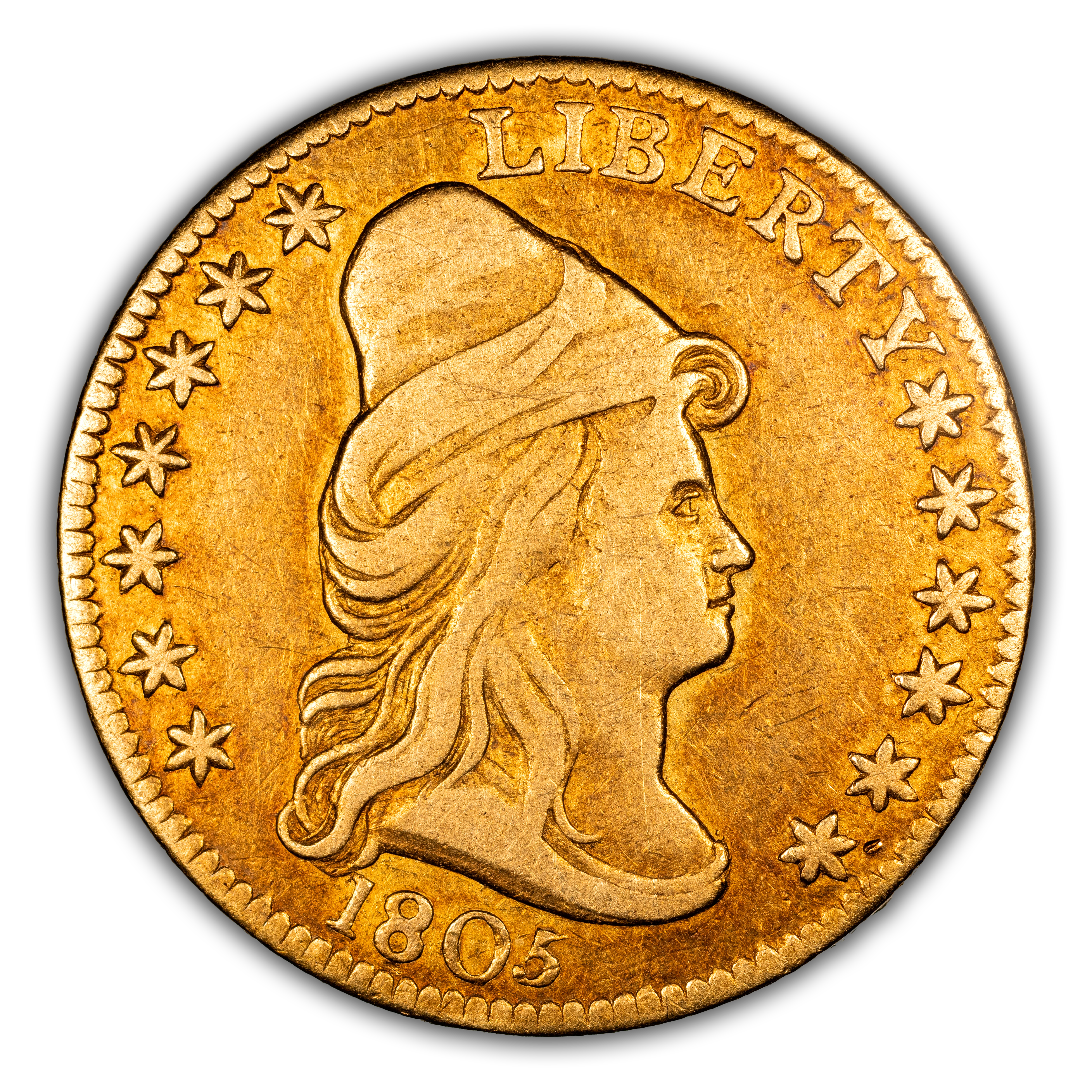 1805 Capped Bust Right Quarter Eagle. Bass Dannreuther-1. Rarity-4. Mint State-64+ (PCGS).