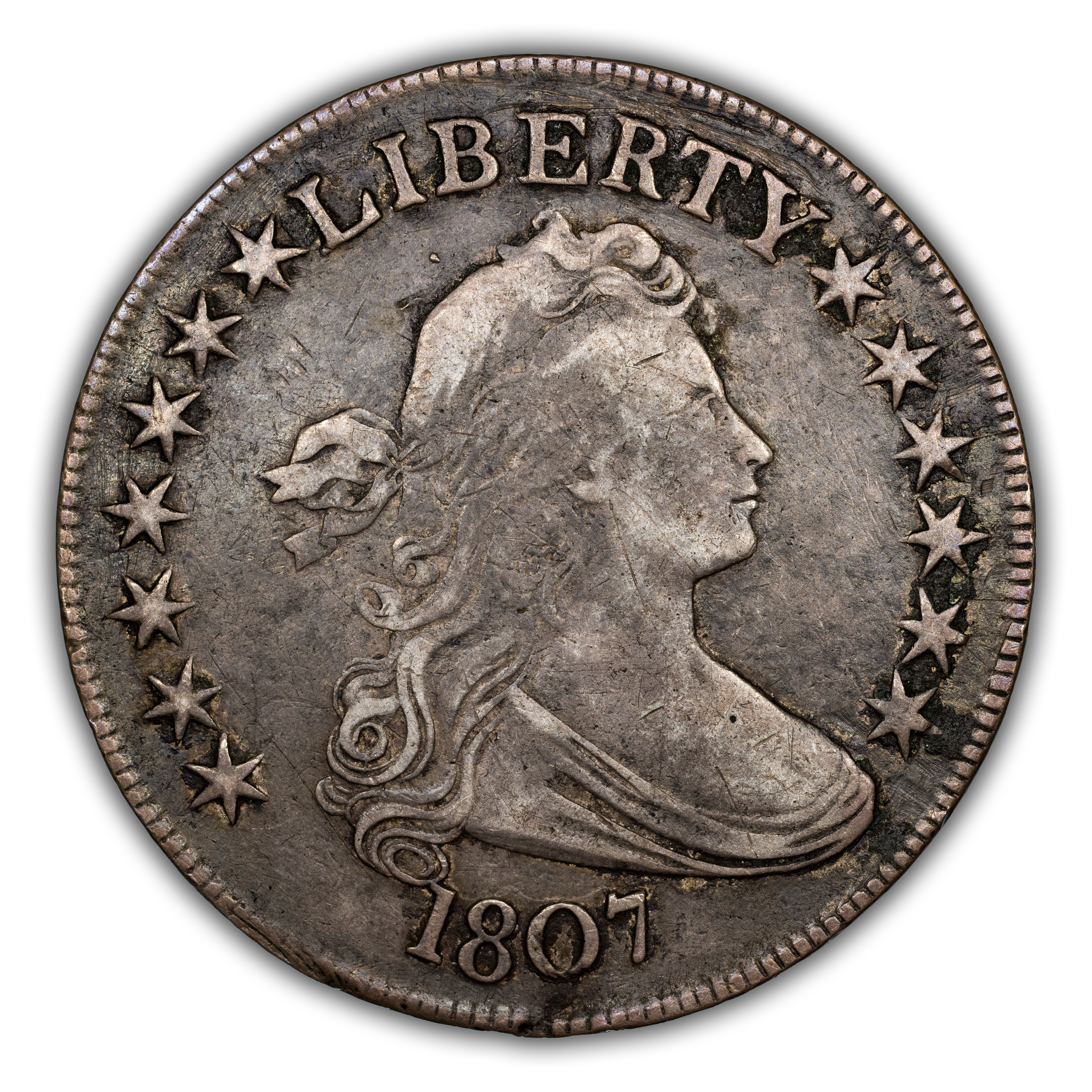 1807 50C Draped Bust, O-105, R.1, XF45 NGC. CDN: $1,600 Whsle. Bid for NGC/PCGS XF45. Mintage 301,076....
