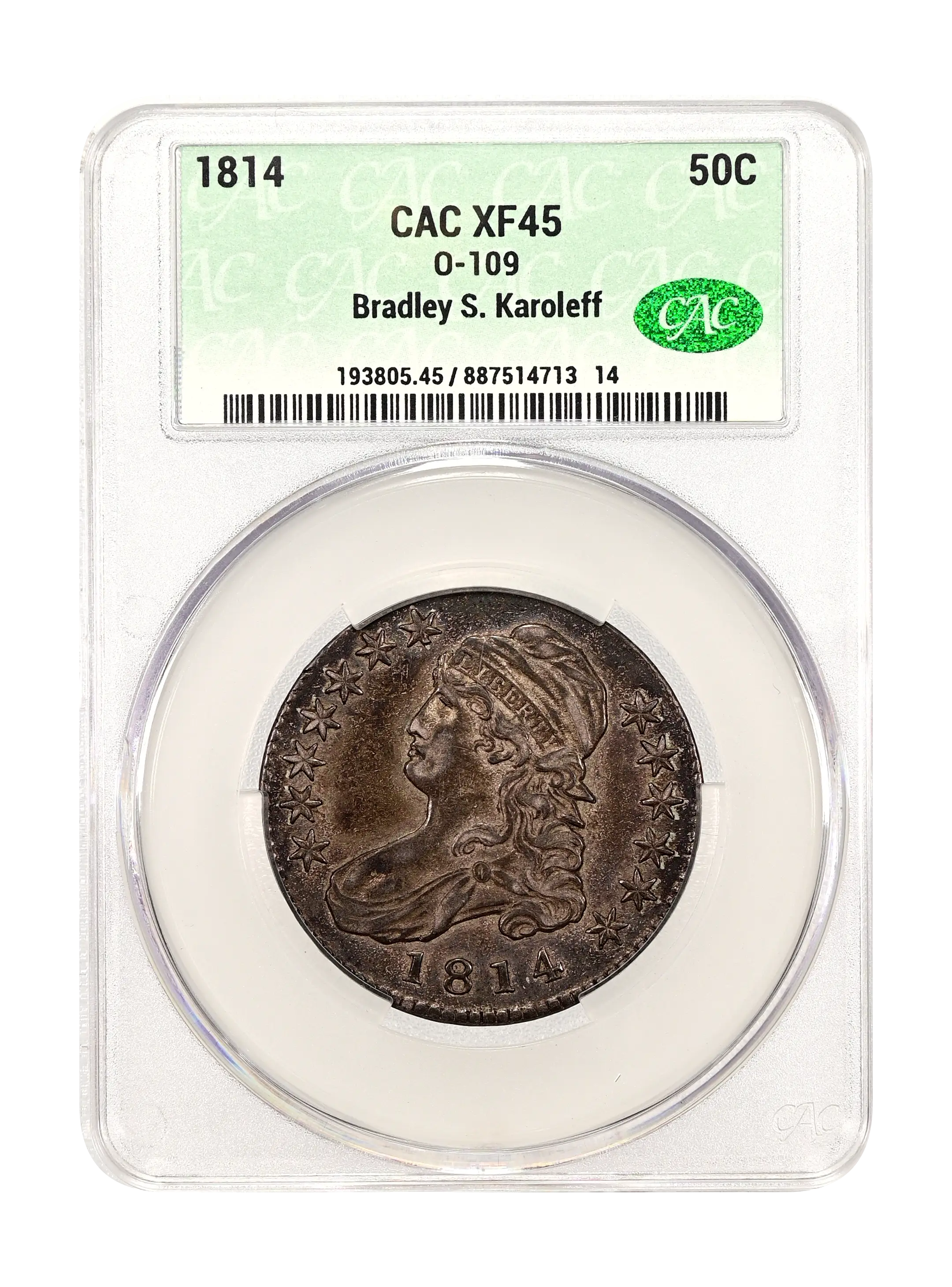 1814 50C O-109, R.3, XF40 PCGS. Ex: Peterson. PCGS Population: (3/14 and 0/0+). NGC Census: (0/16 and 0/0+). CDN: $498.75.W...