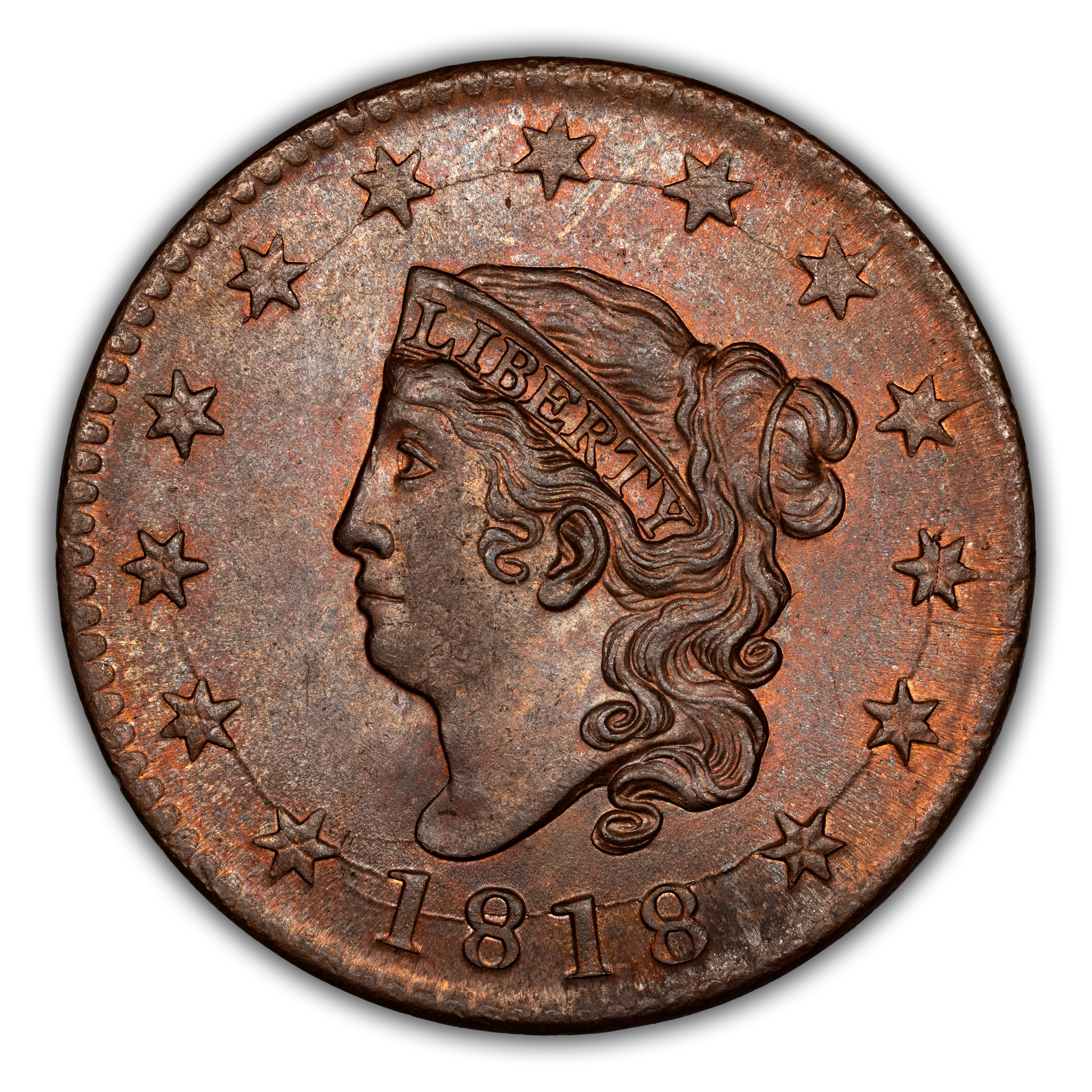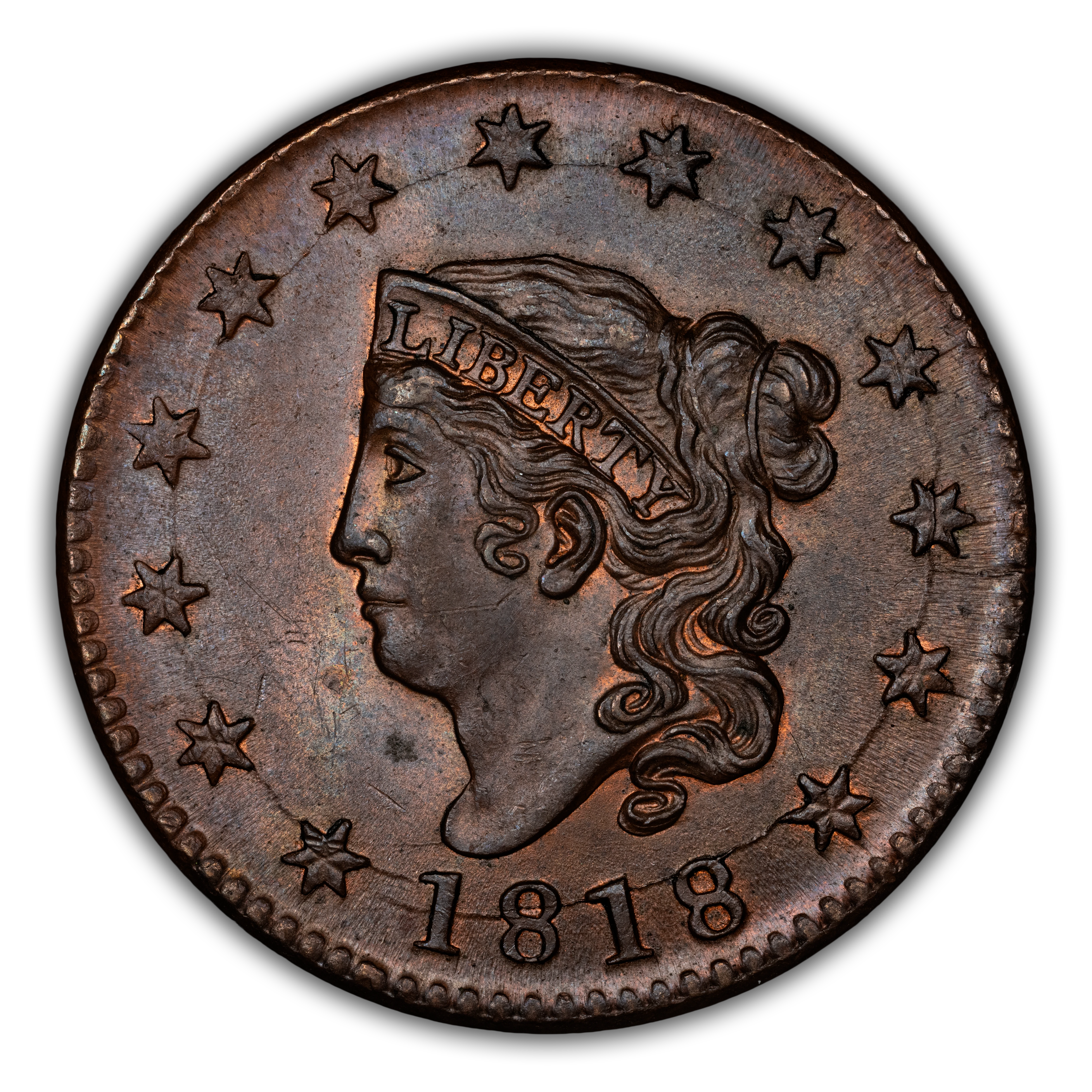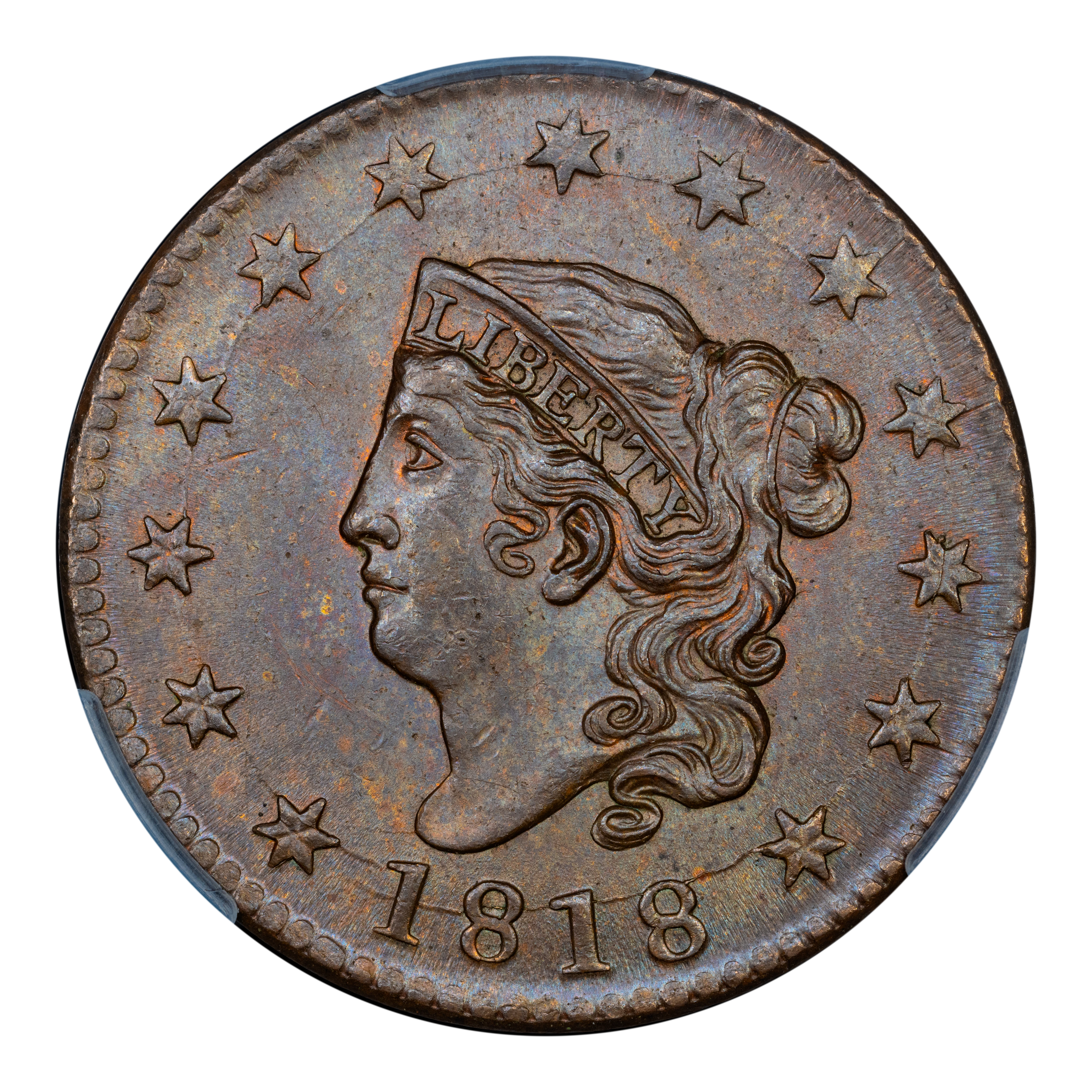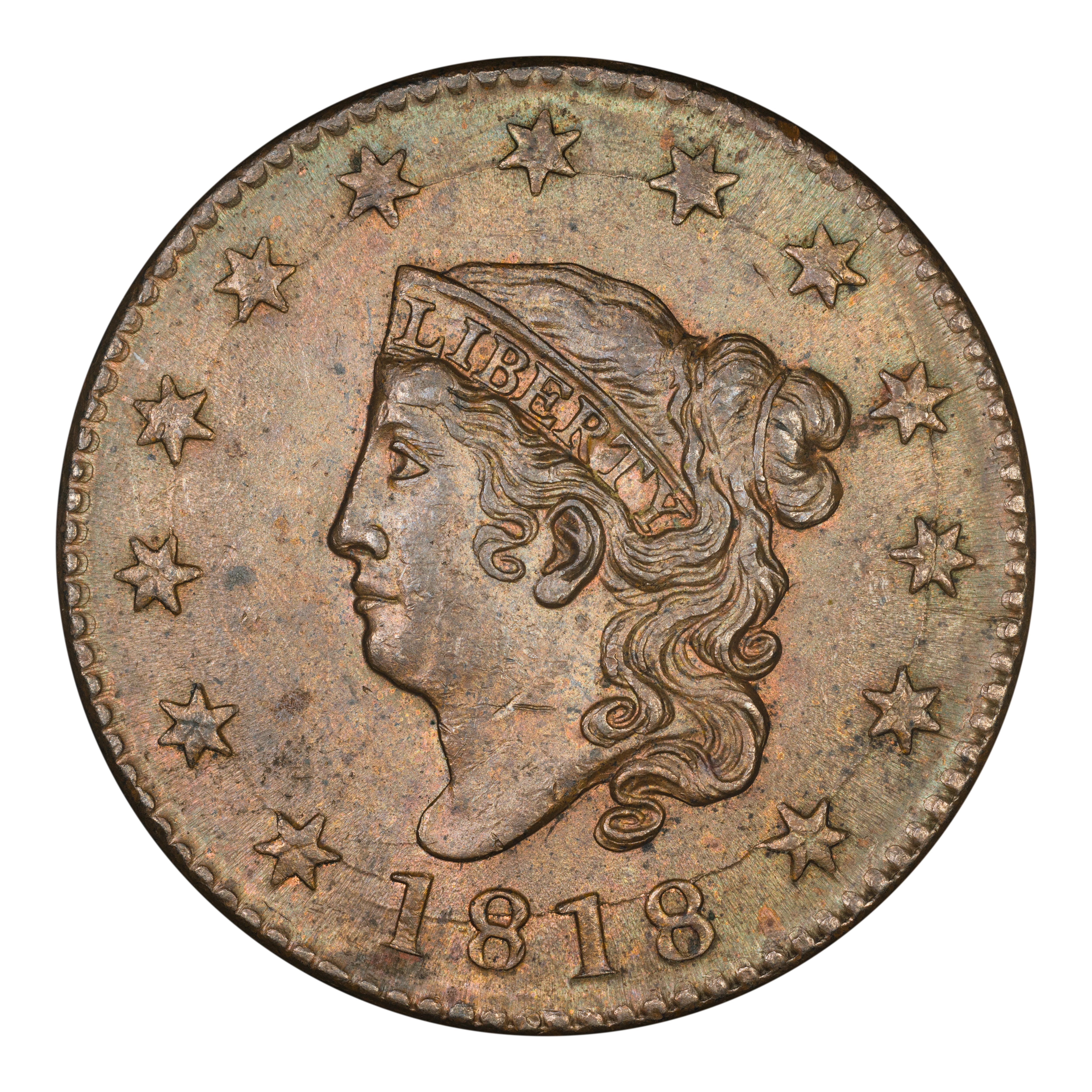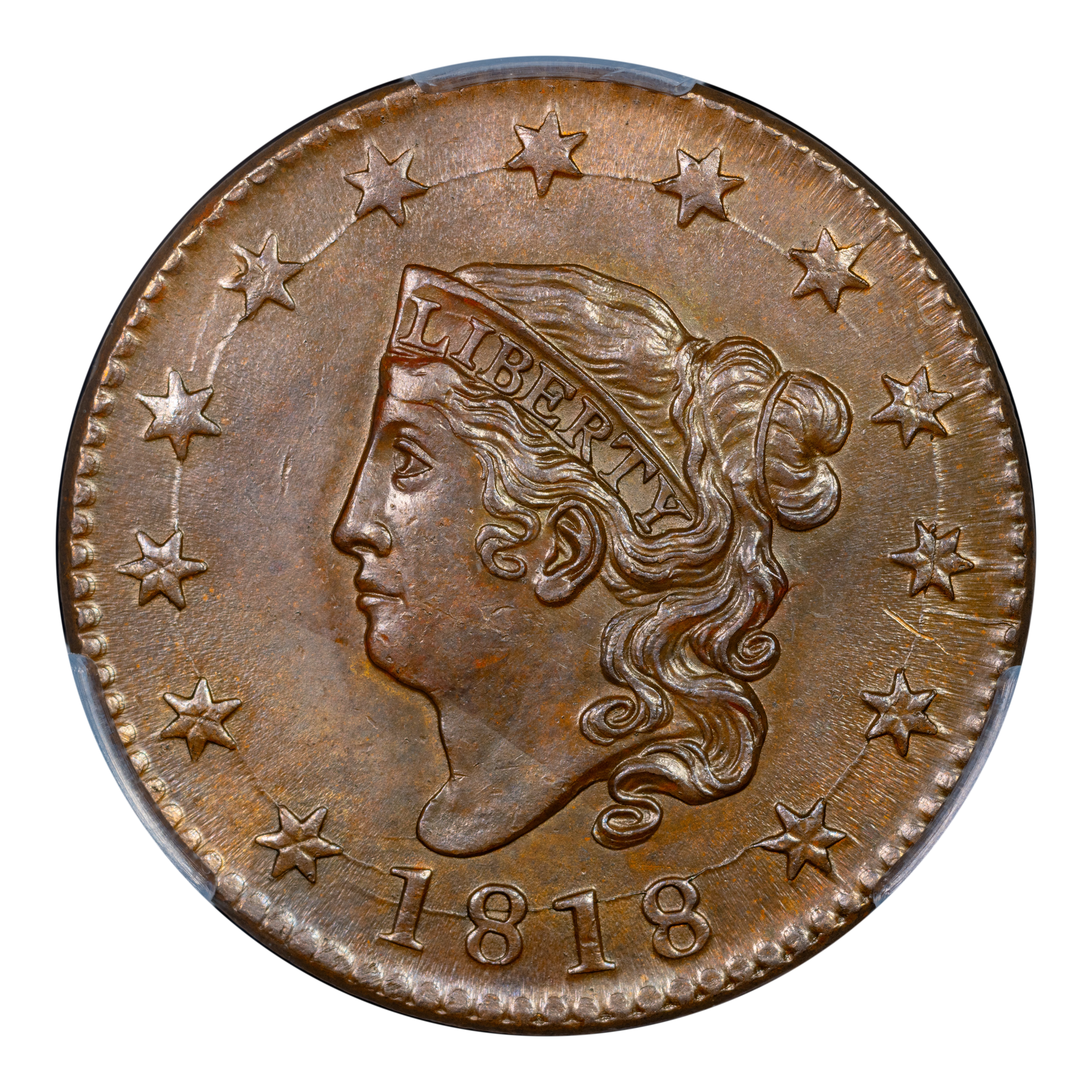 1818 1c NGC AU58 BN (N-7) ex: Jules Reiver Collection.