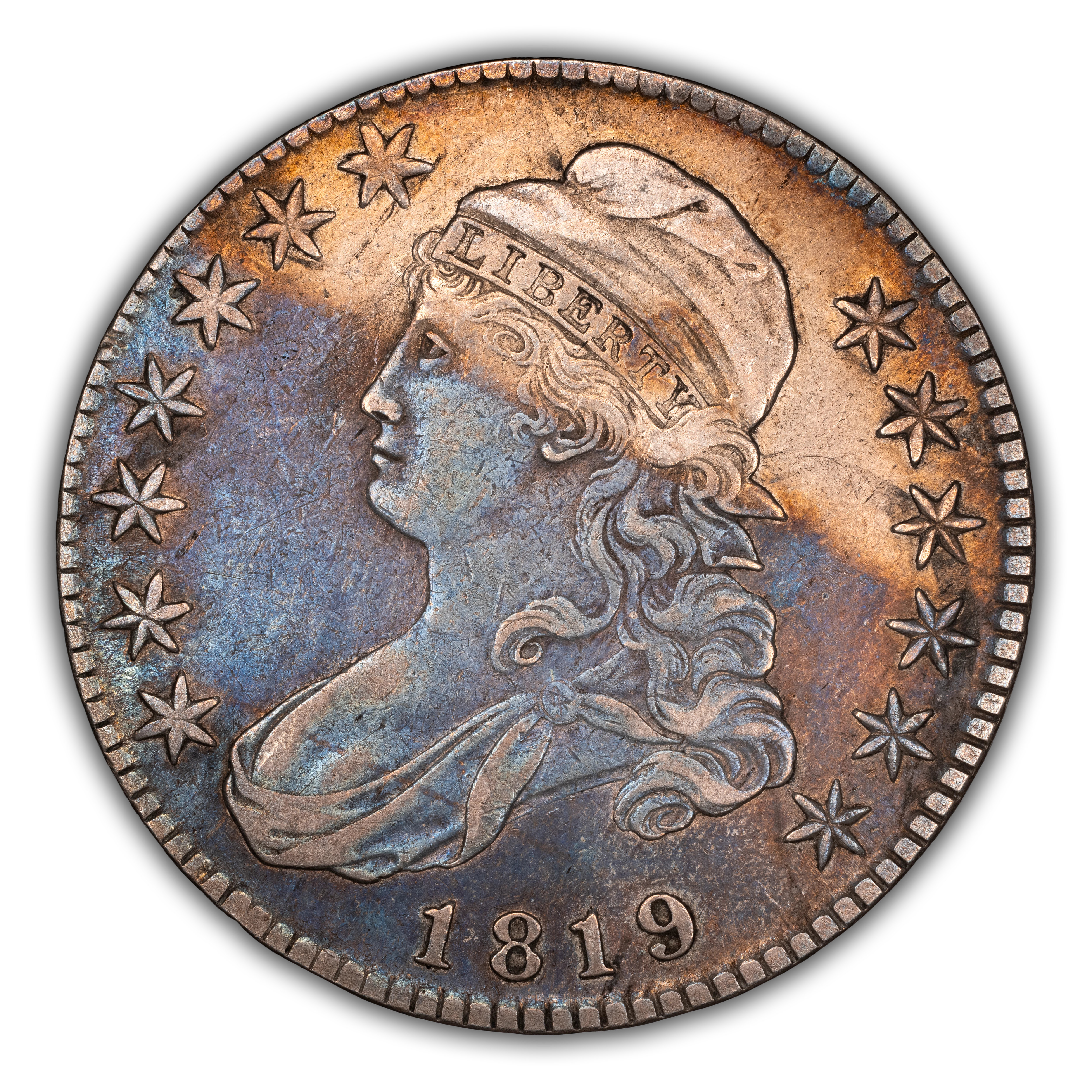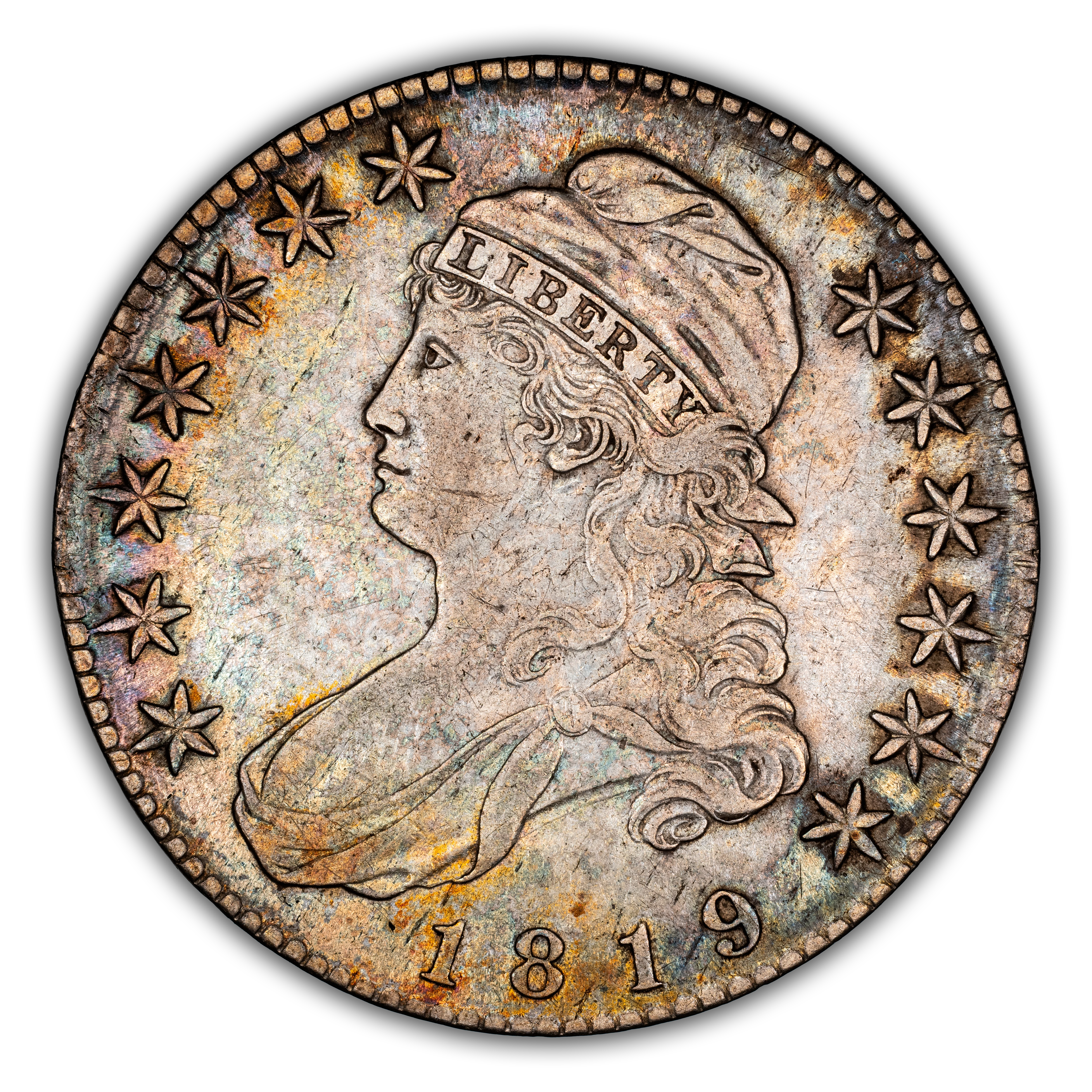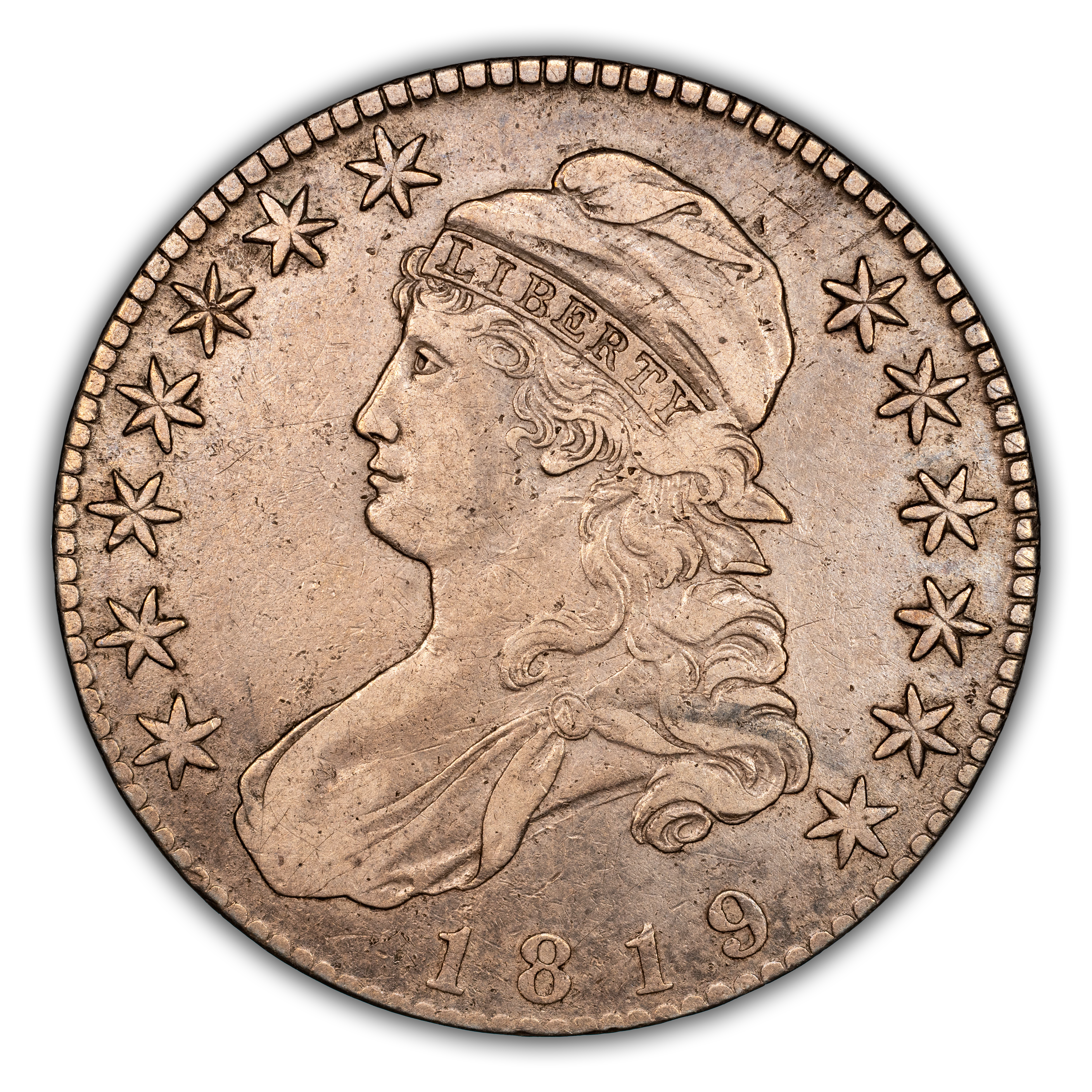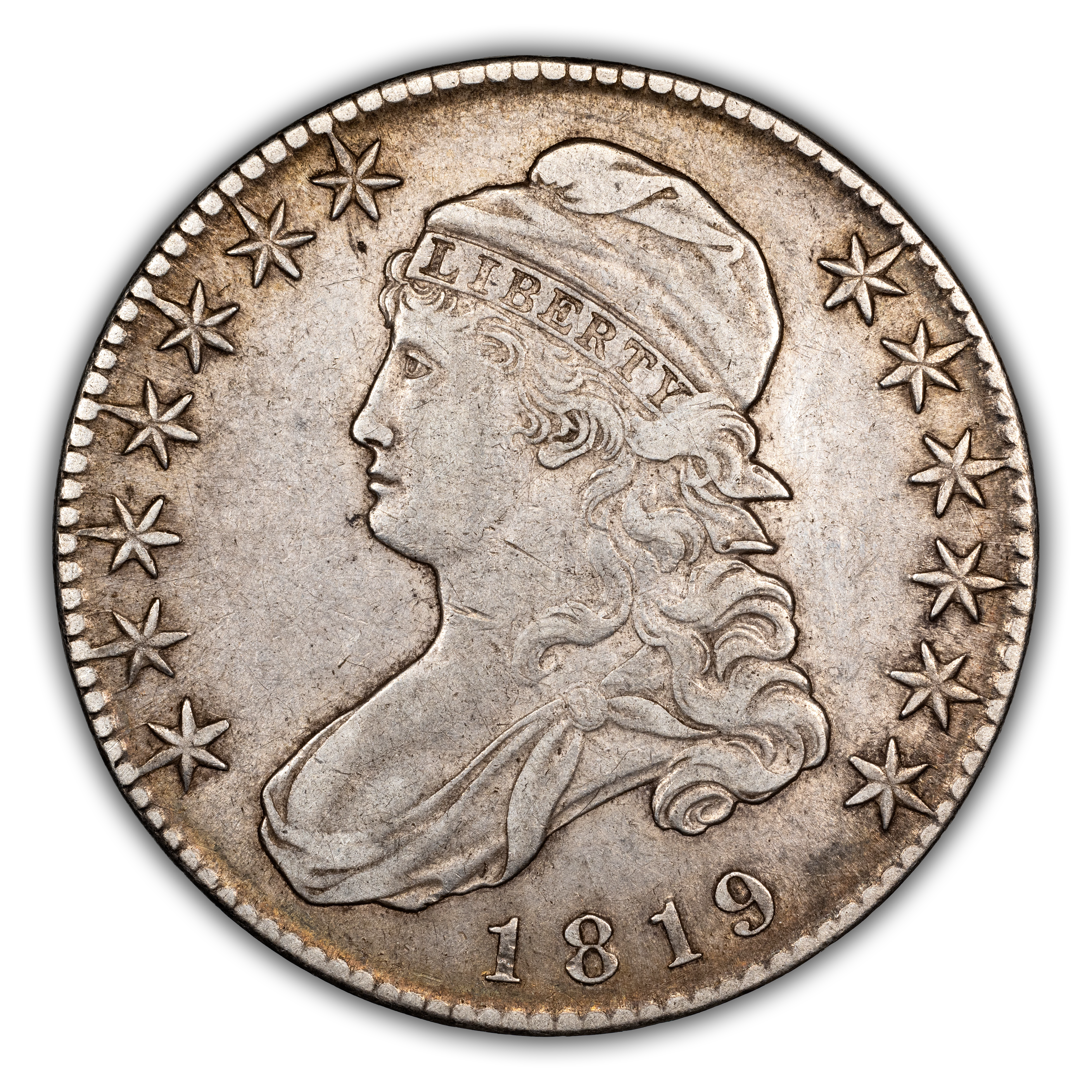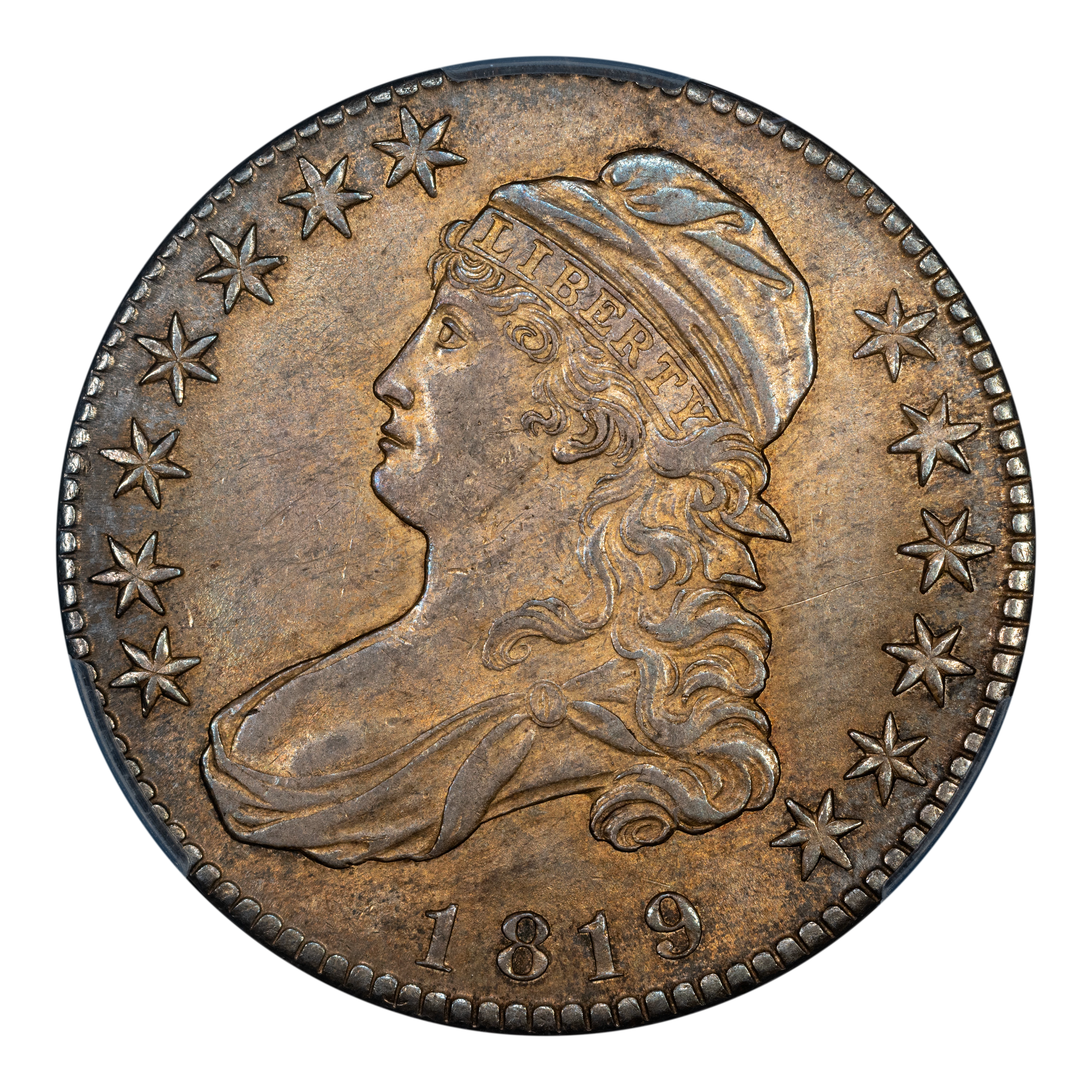 Reverse: An heraldic eagle holding olive branches and 3 arrows in its claws is surrounded by the words UNITED STATES OF AMERICA around the periphery. A ribbon below bears the motto E PLURIBUS UNUM. The denomination of 50C is centered below the eagle.