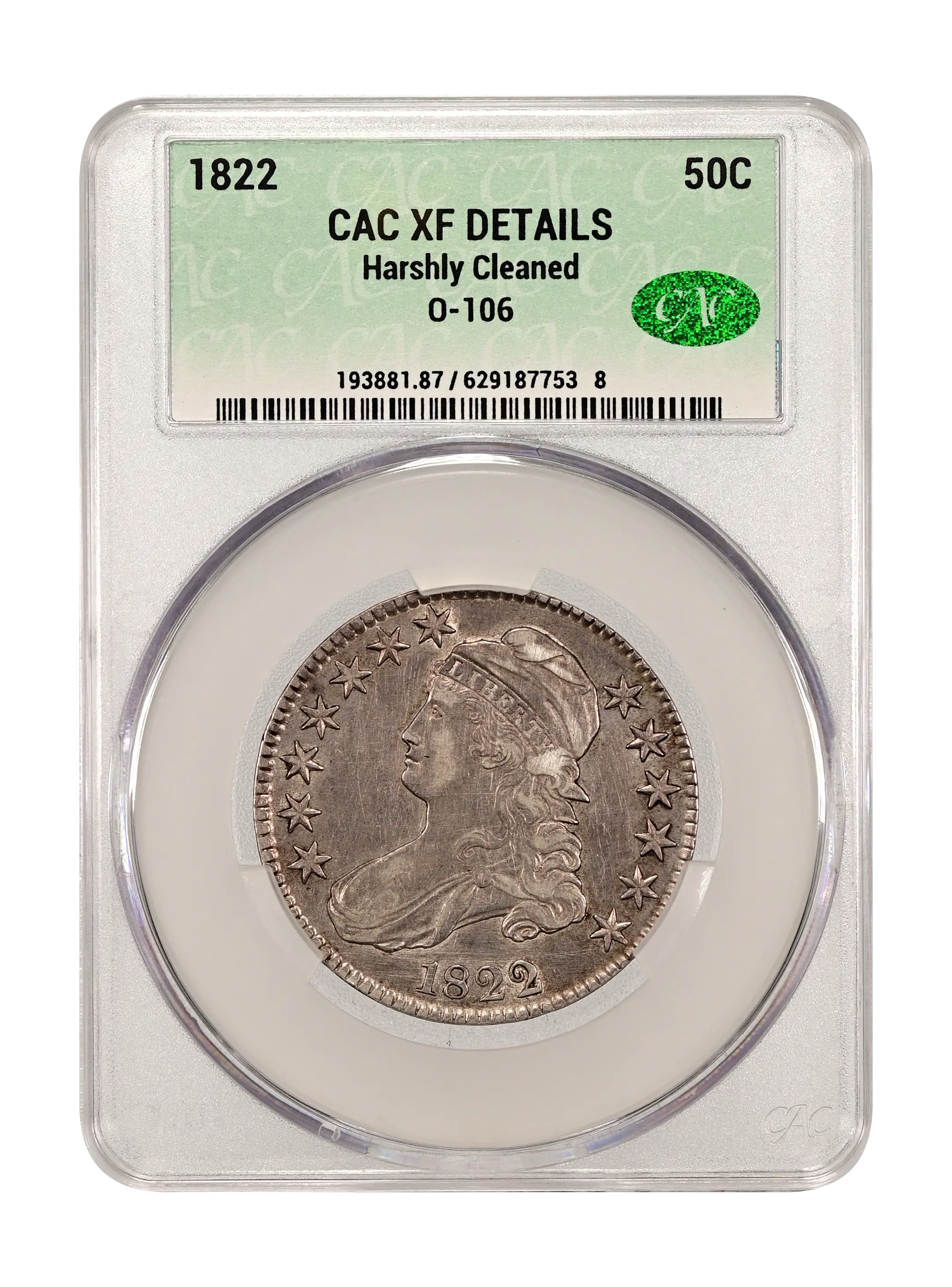 1822 O-106 50c CAC XF DETAILS