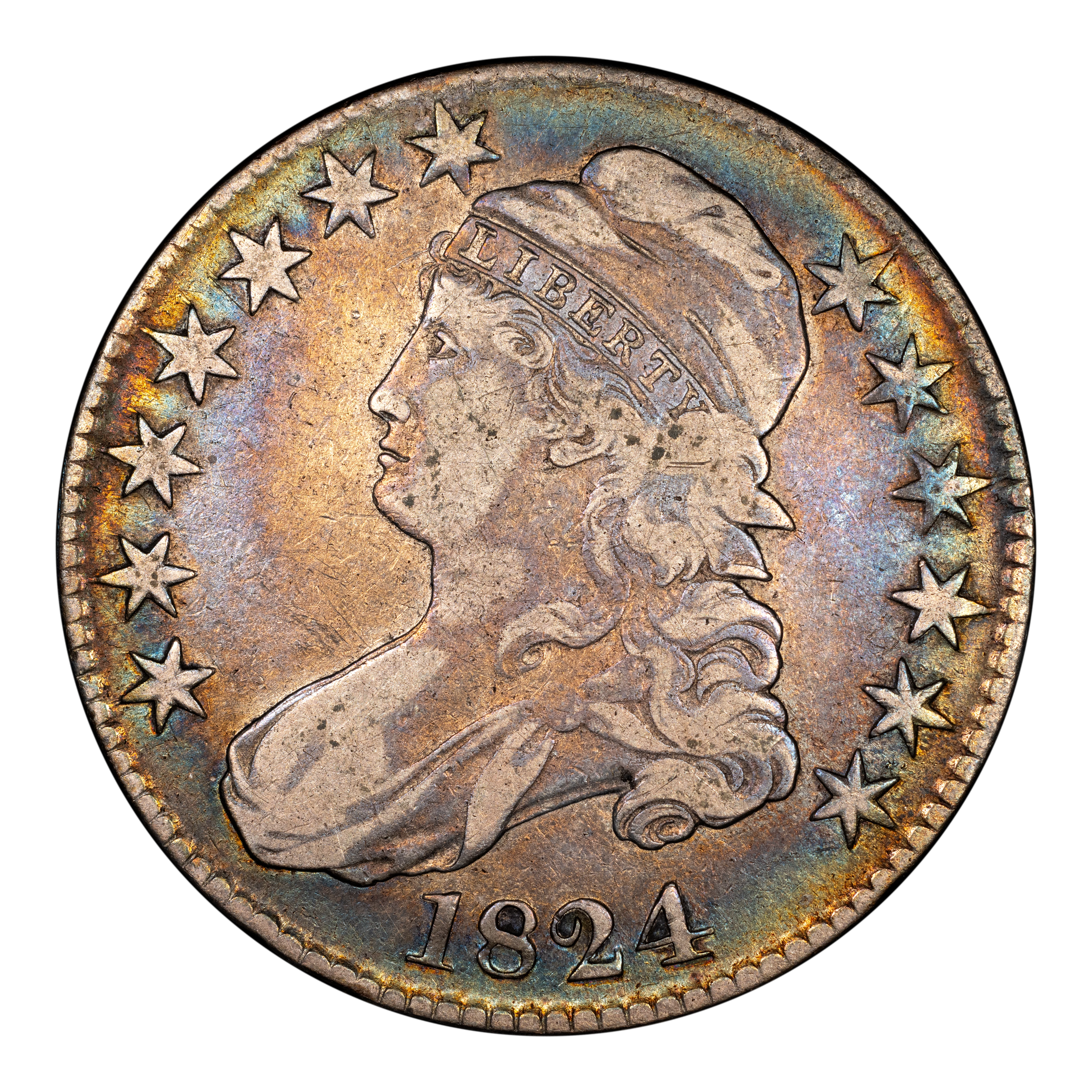 Reverse: An heraldic eagle holding olive branches and 3 arrows in its claws is surrounded by the words UNITED STATES OF AMERICA around the periphery. A ribbon below bears the motto E PLURIBUS UNUM. The denomination of 50C is centered below the eagle.