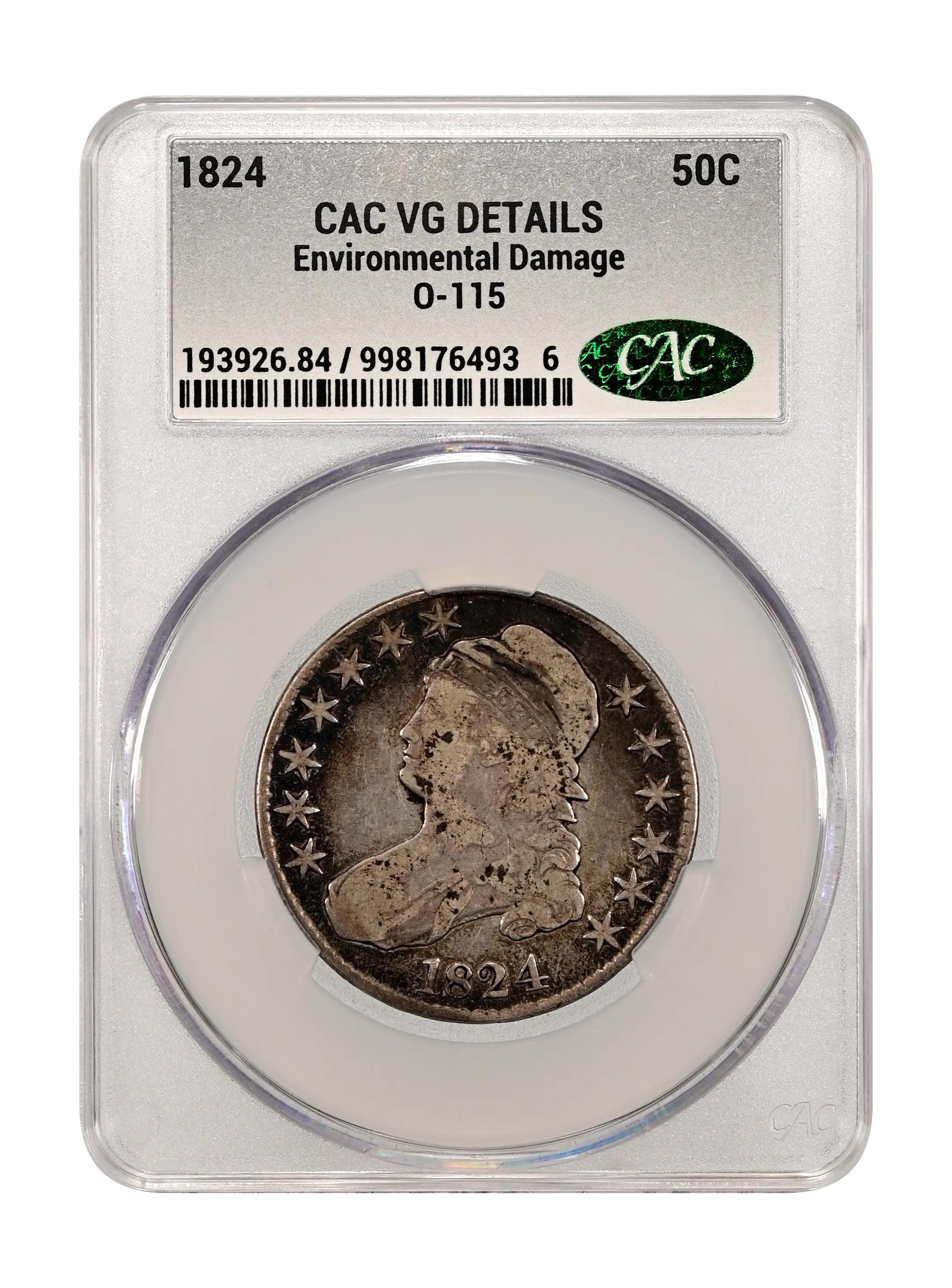 1824 O-115 50c CAC VG DETAILS