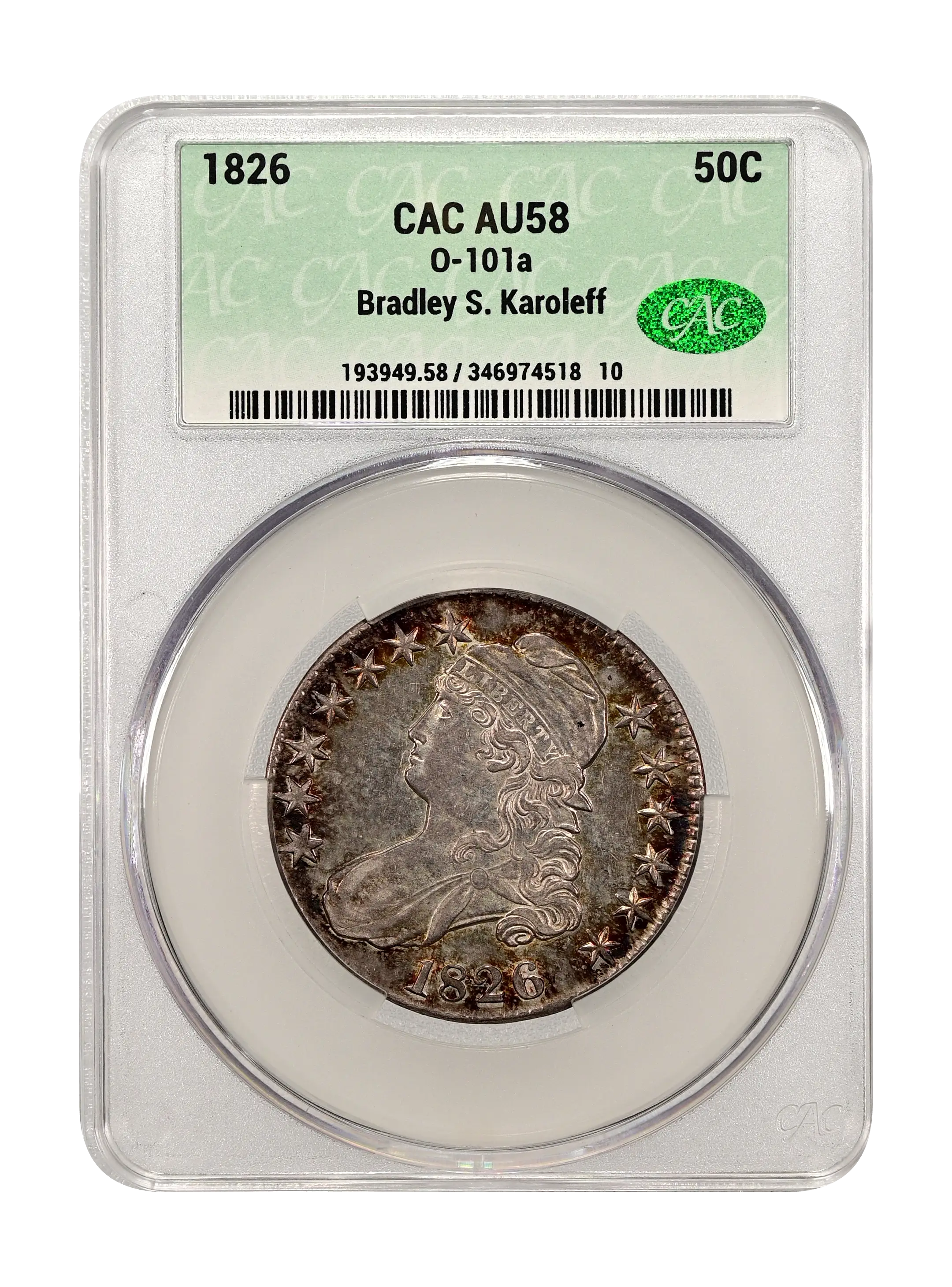 1826 50C O-101a, R.2, XF45 PCGS. PCGS Population: (6/7 and 0/1+). NGC Census: (4/12 and 0/0+). CDN: $190 Whsle. Bid for NGC...