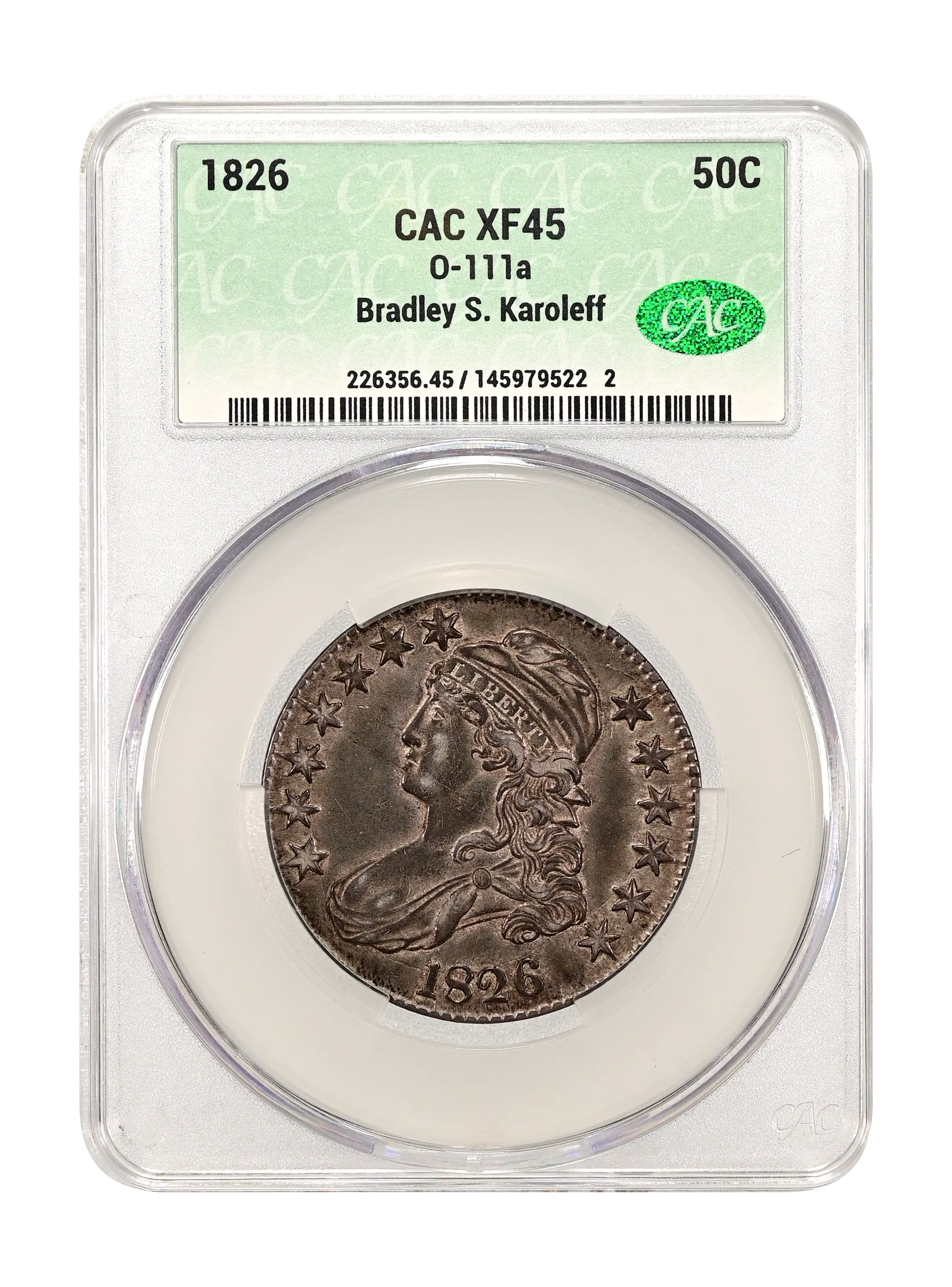 1826 O-111a 50c CAC XF45