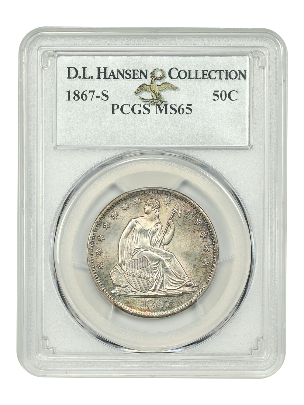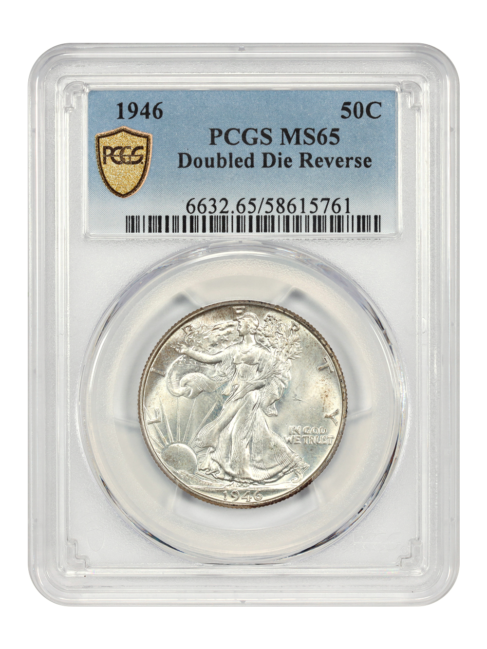 Reverse: An heraldic eagle holding olive branches and 3 arrows in its claws is surrounded by the words UNITED STATES OF AMERICA around the periphery. A ribbon below bears the motto E PLURIBUS UNUM. The denomination of 50C is centered below the eagle.
