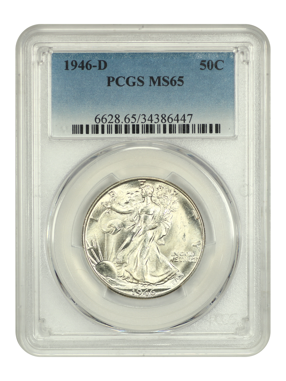Reverse: An heraldic eagle holding olive branches and 3 arrows in its claws is surrounded by the words UNITED STATES OF AMERICA around the periphery. A ribbon below bears the motto E PLURIBUS UNUM. The denomination of 50C is centered below the eagle.