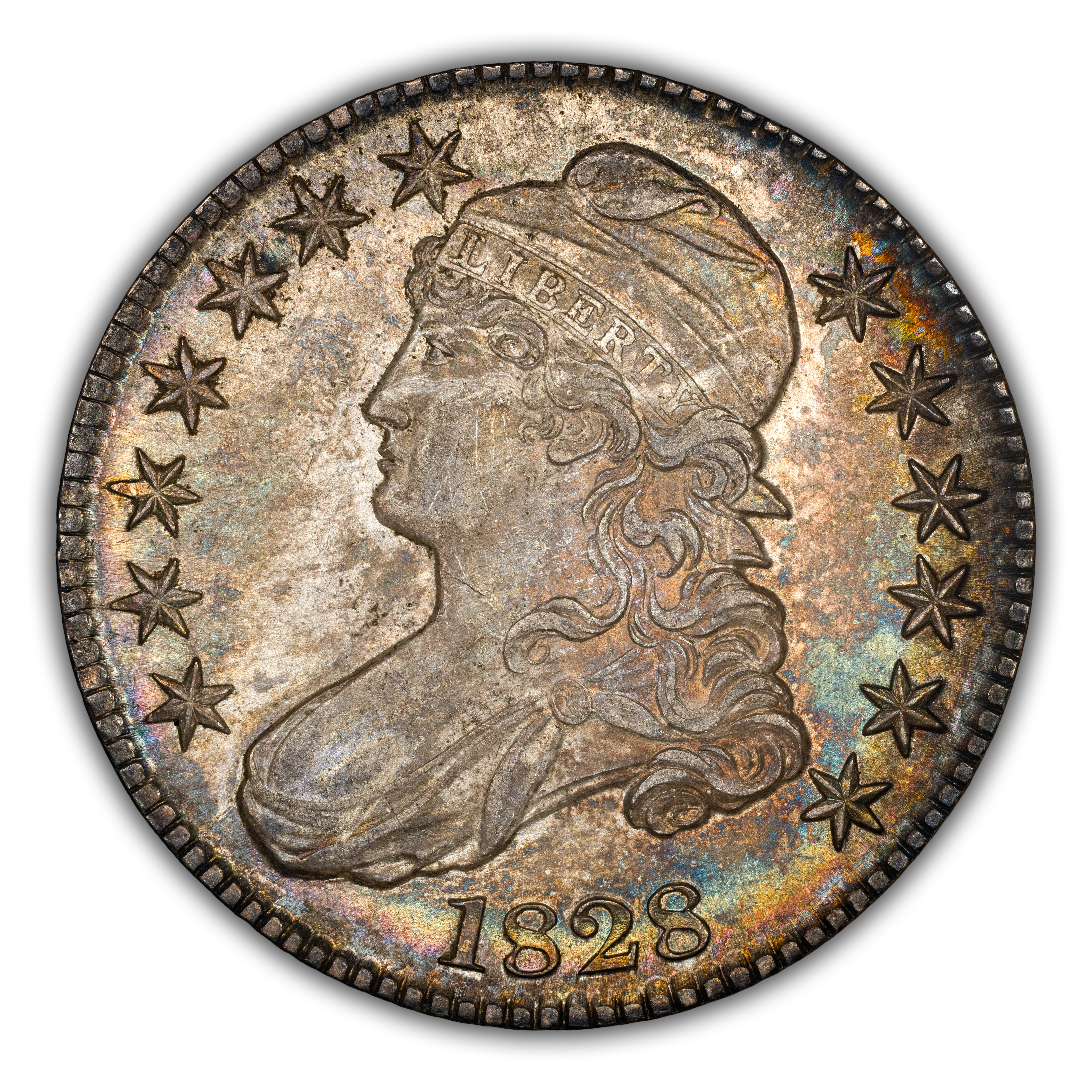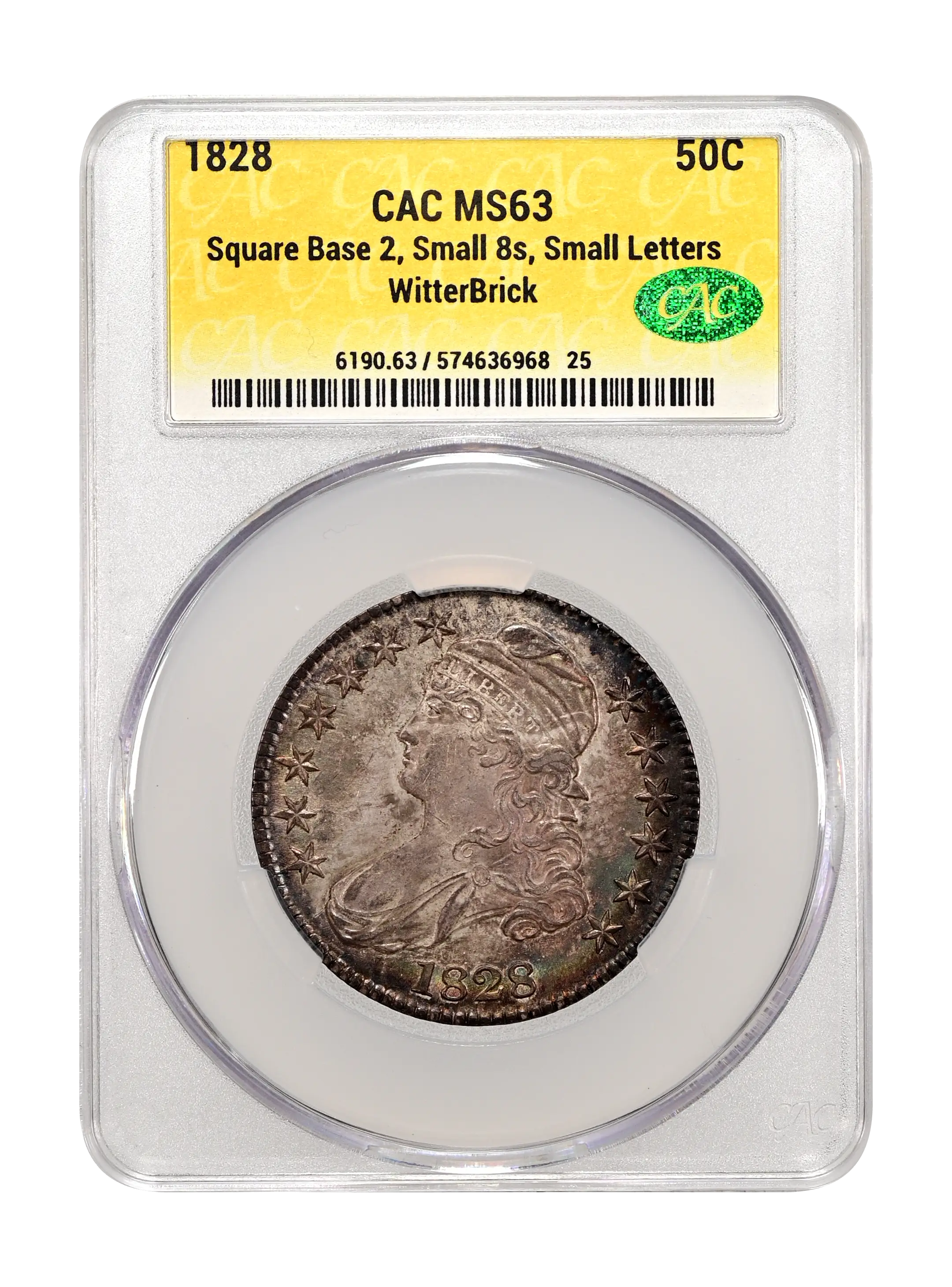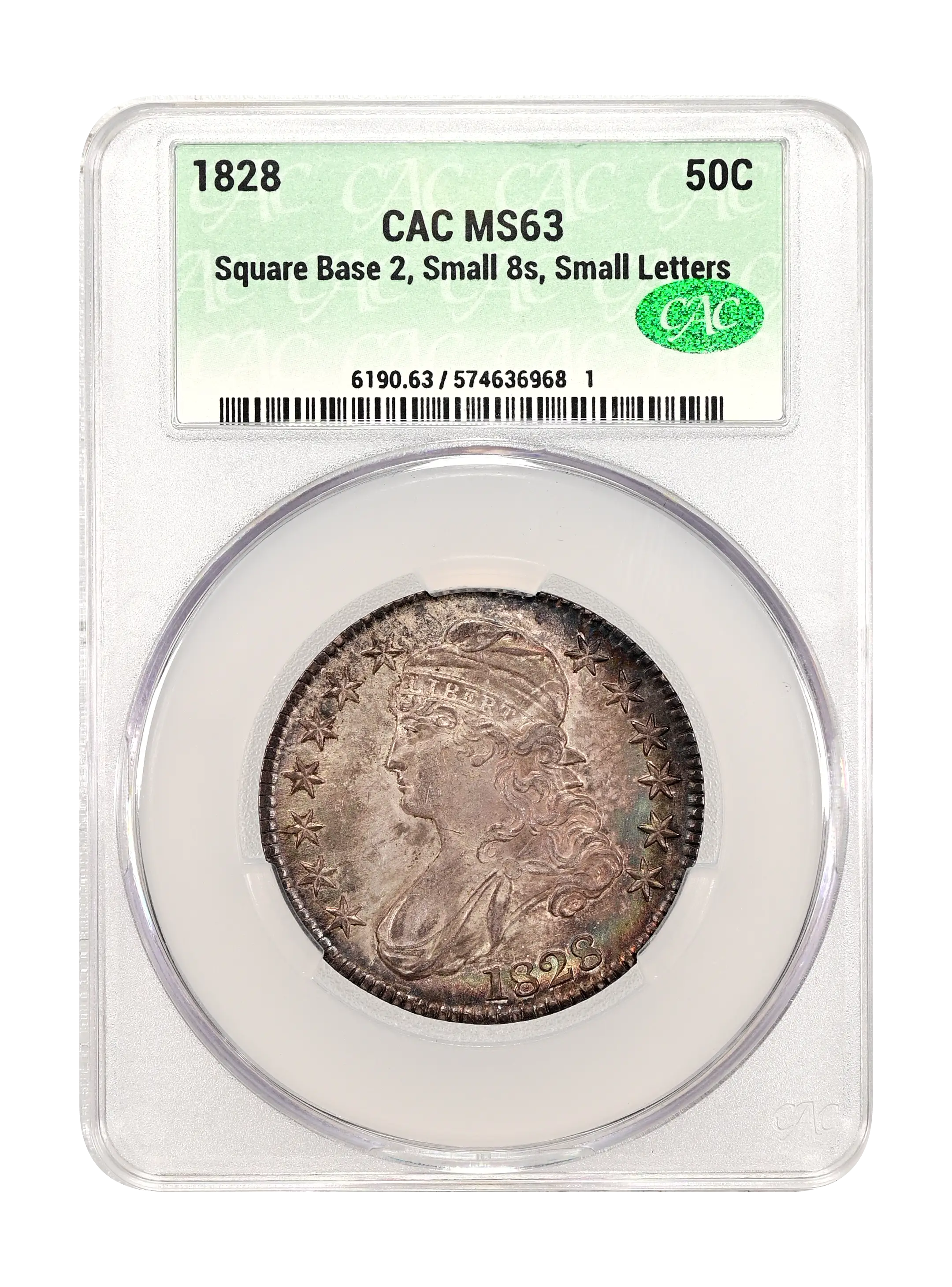 1828 Square Base 2, Small 8s, Small Letters 50c CAC MS63