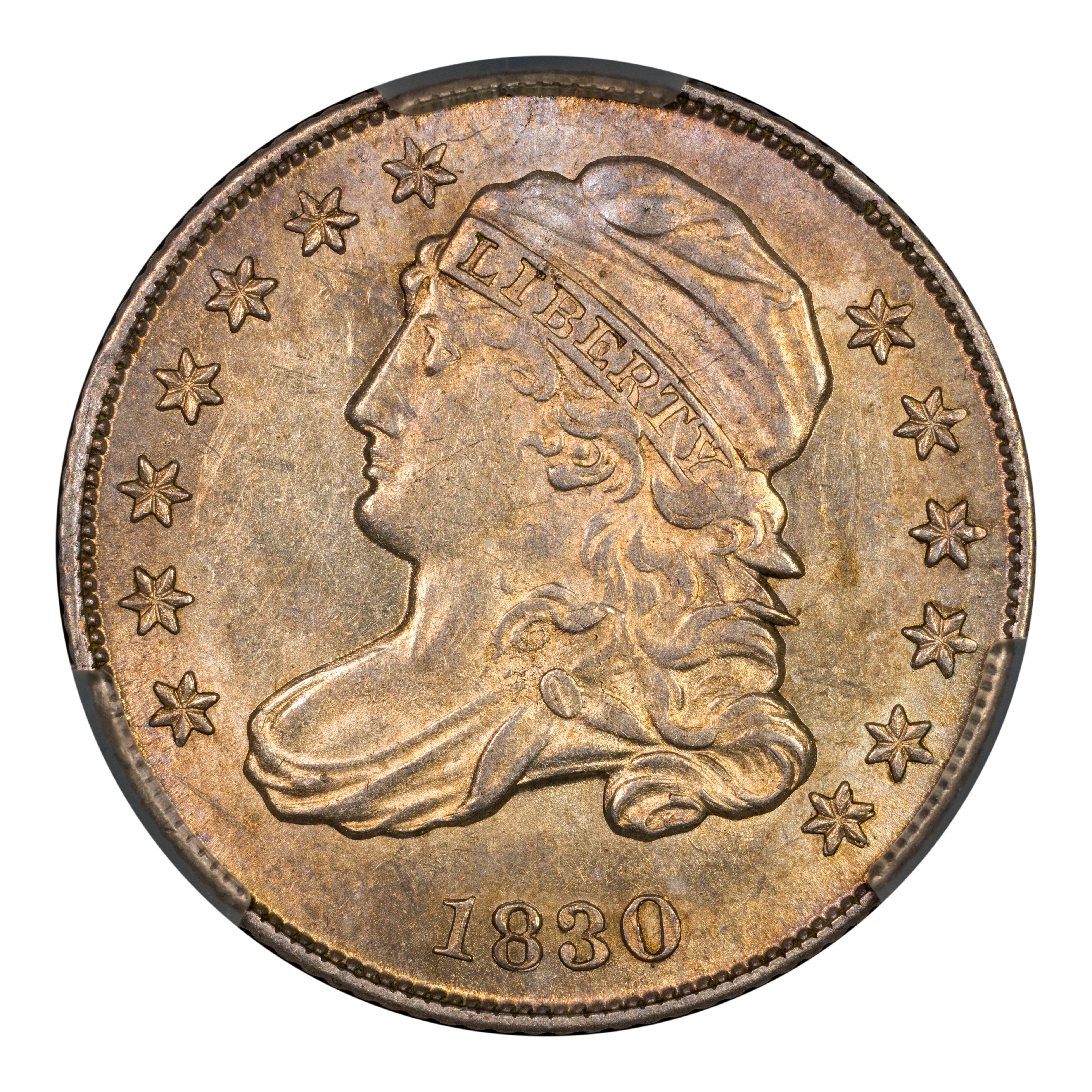 Capped Bust dimes, designed by John Reich, are generally more common than the Draped Bust issues. However, like their earlier counterparts they are challenging to locate in the better Mint States grades. The 1822 and 1829 Curl Base 2 are the rarest issues, with both regularly trading in the four-figure range.