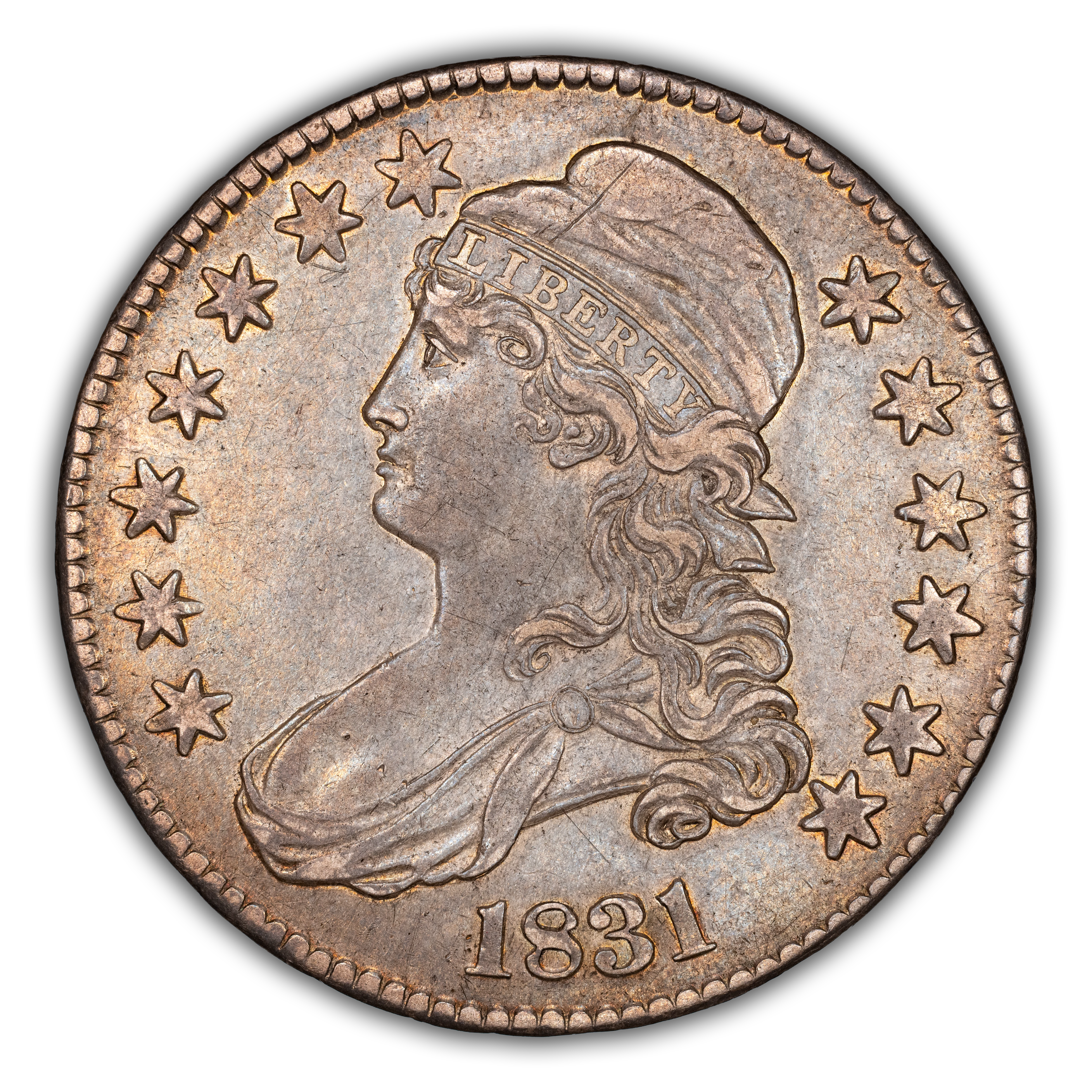 1831 50C O-113, R.4, AU53 PCGS. PCGS Population: (3/4). NGC Census: (2/5). AU53. Mintage 5,873,660. From The Merrill ...