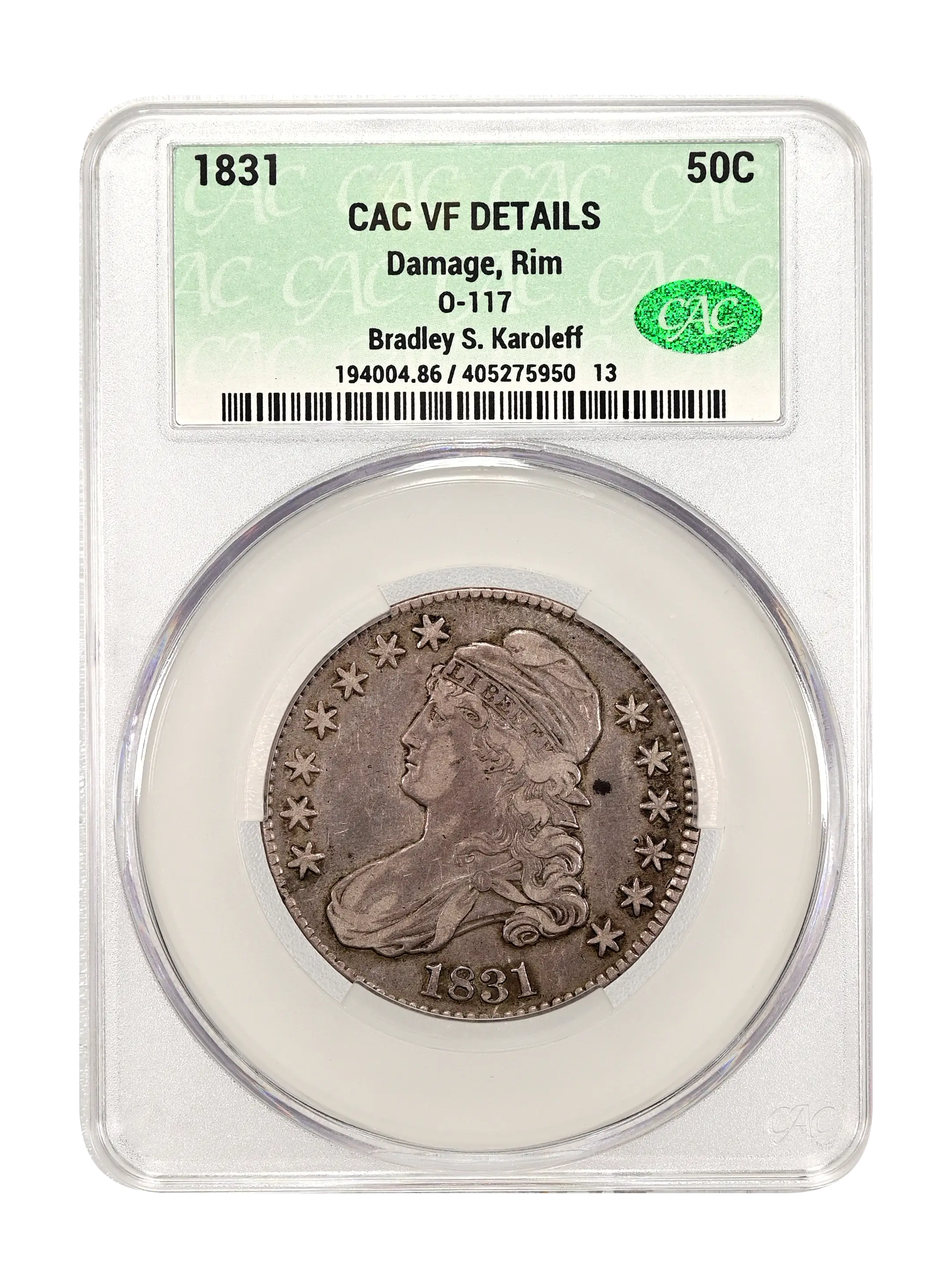 1831 O-117 50c CAC VF DETAILS