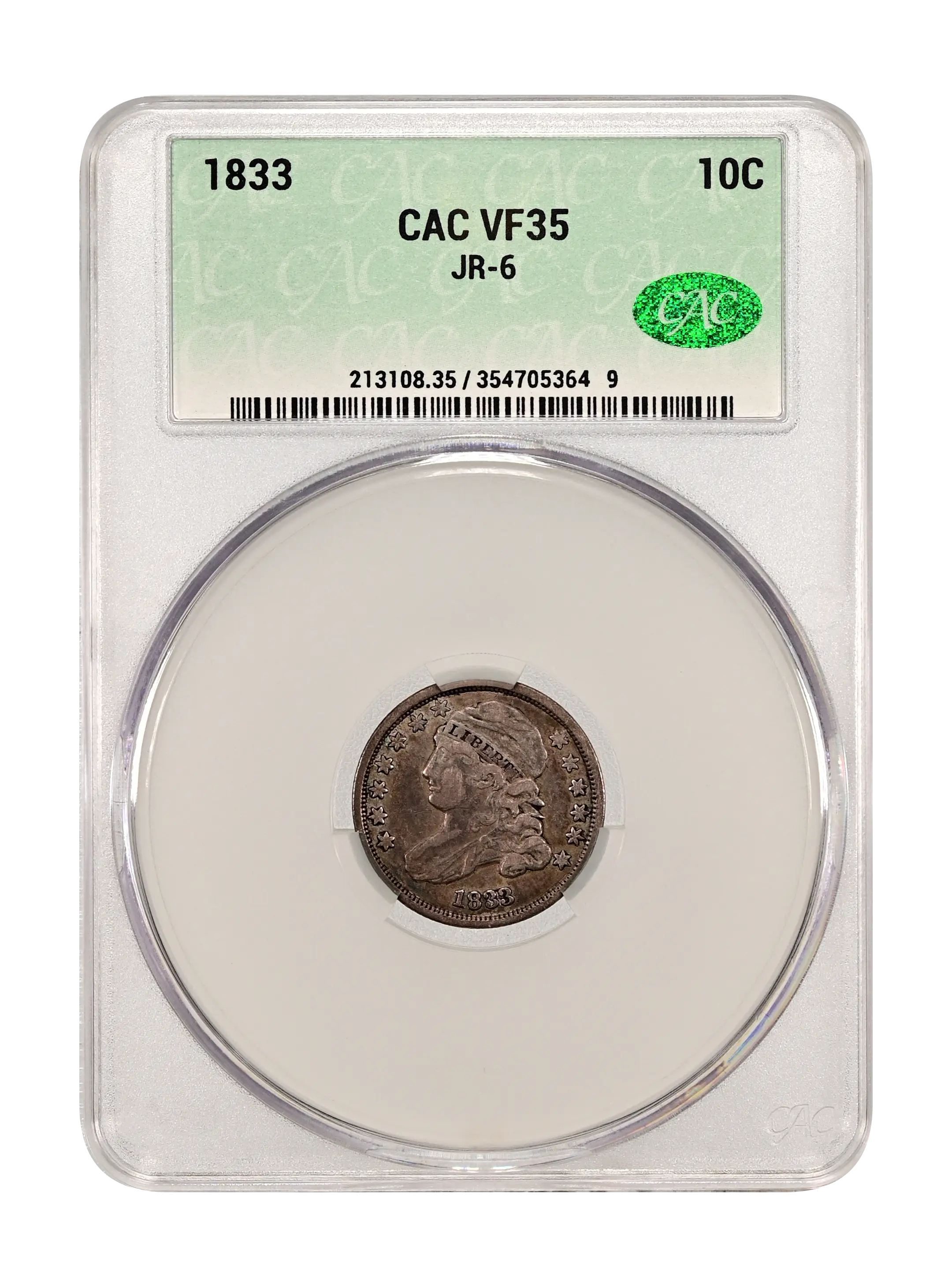 1833 JR-6 10c CAC VF35
