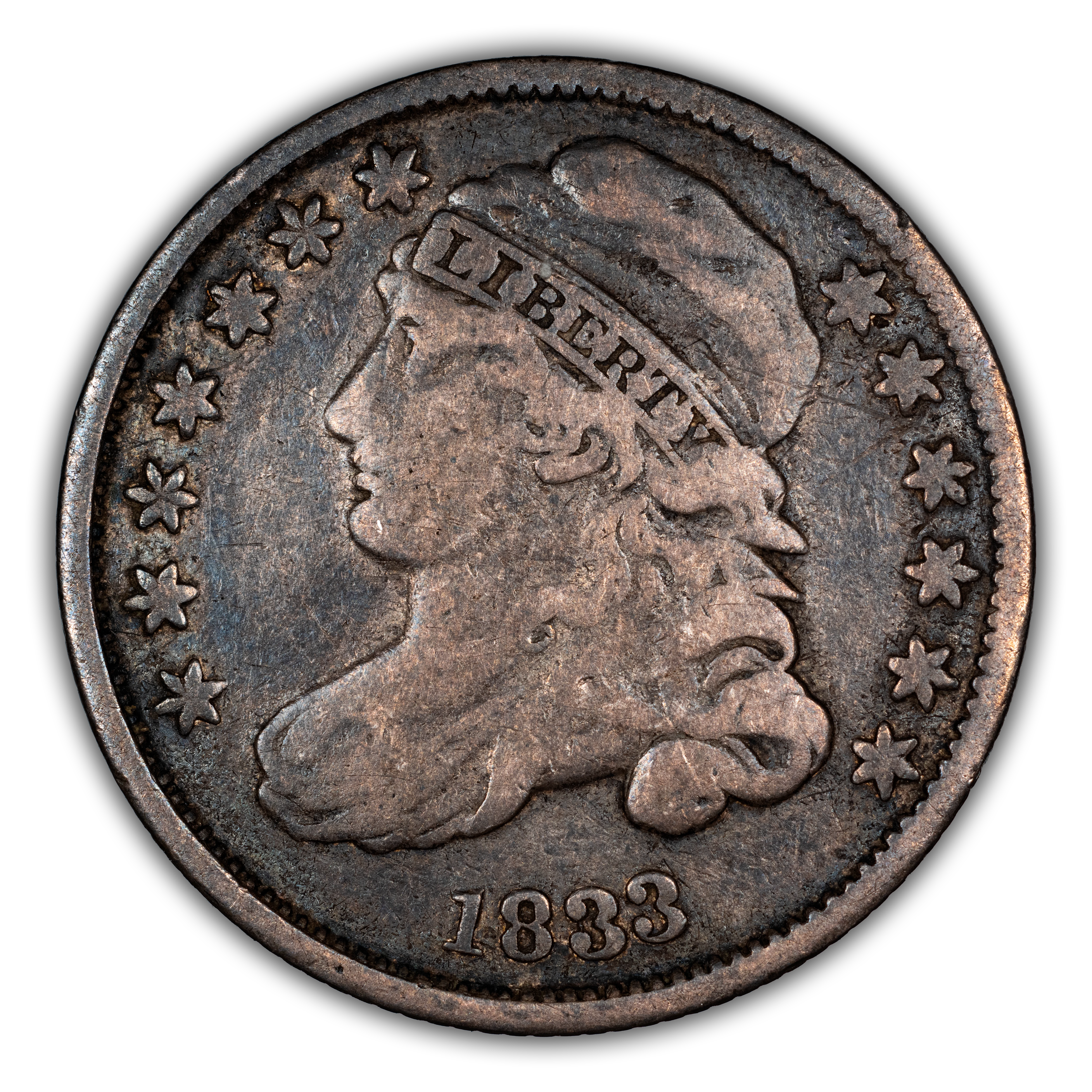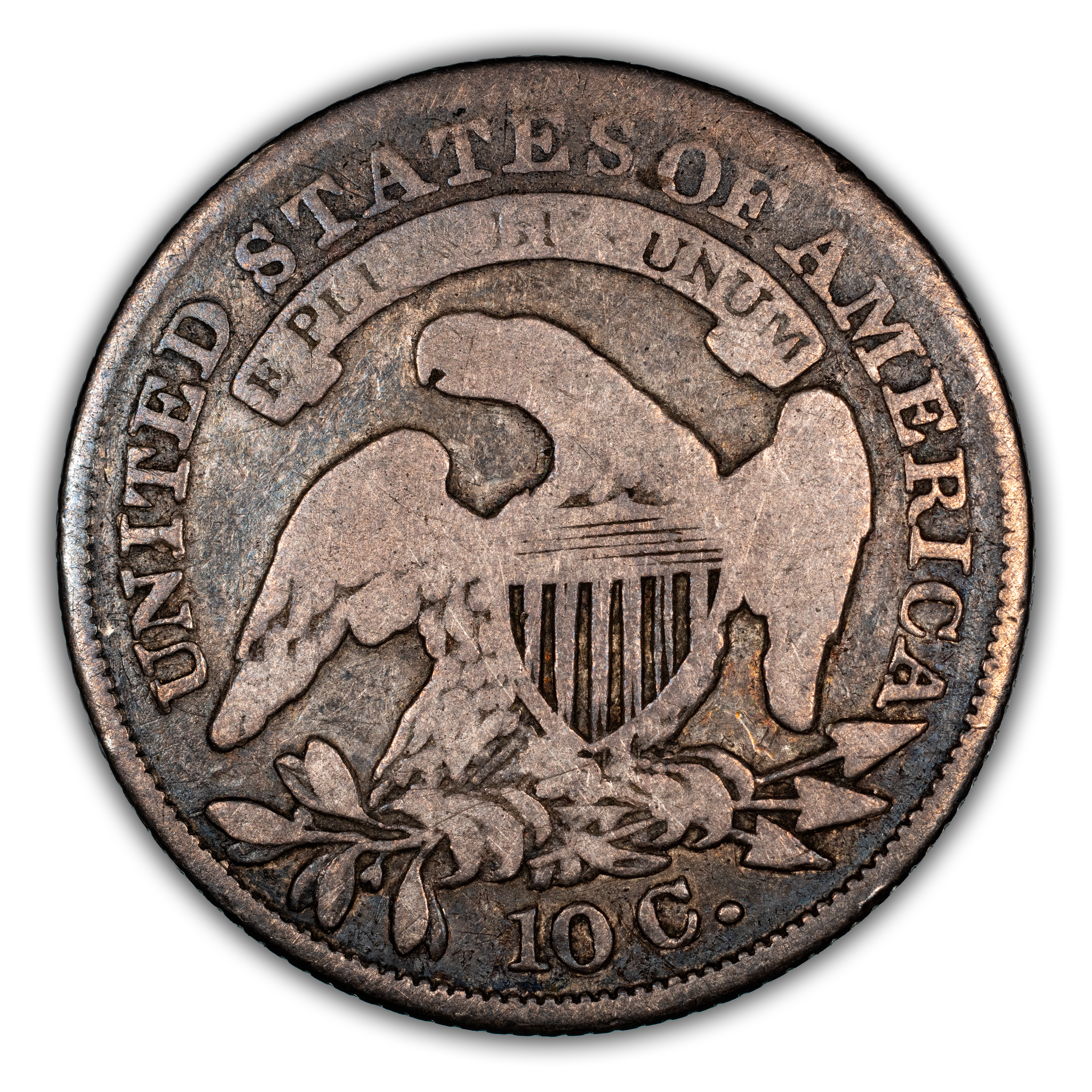 Capped Bust dimes, designed by John Reich, are generally more common than the Draped Bust issues. However, like their earlier counterparts they are challenging to locate in the better Mint States grades. The 1822 and 1829 Curl Base 2 are the rarest issues, with both regularly trading in the four-figure range.