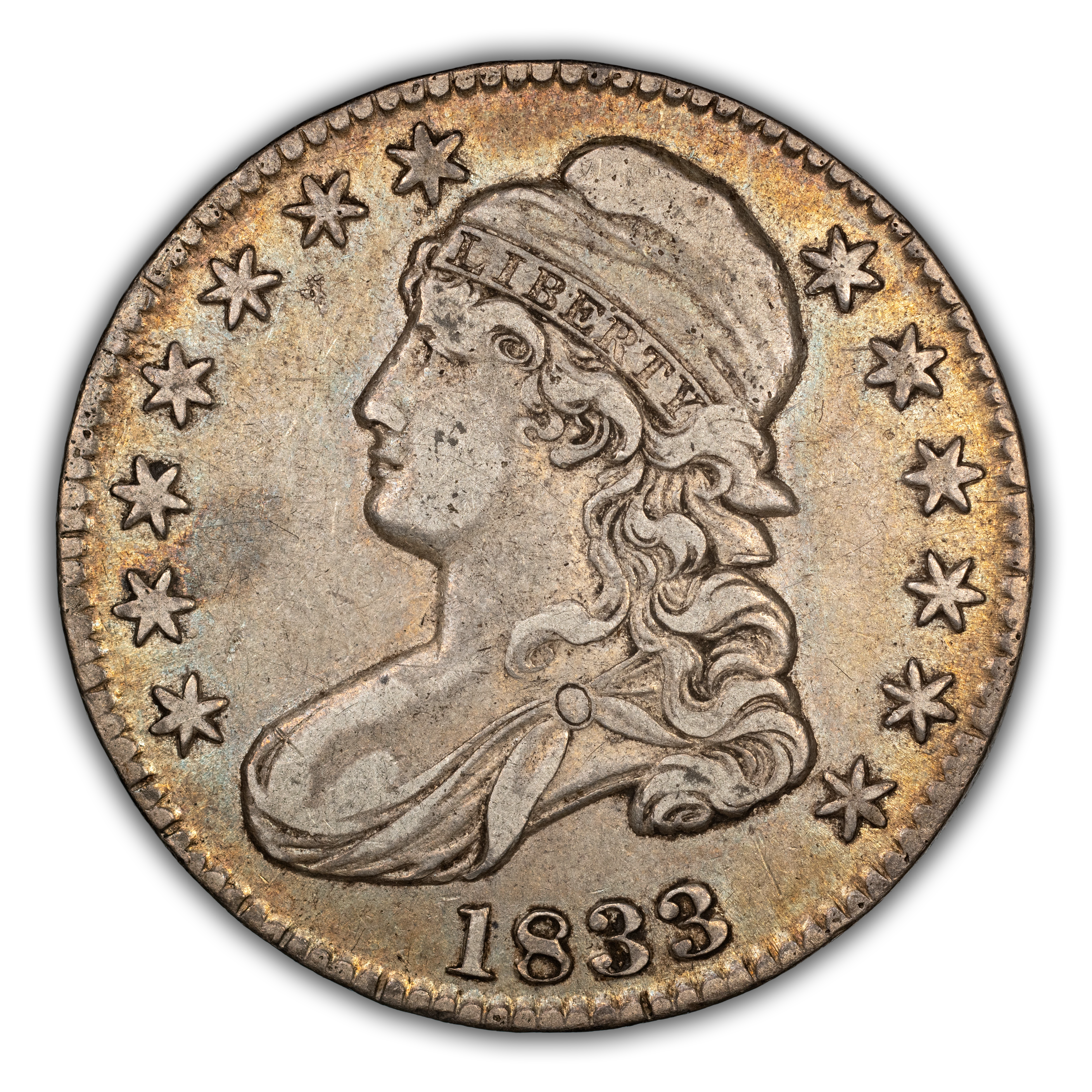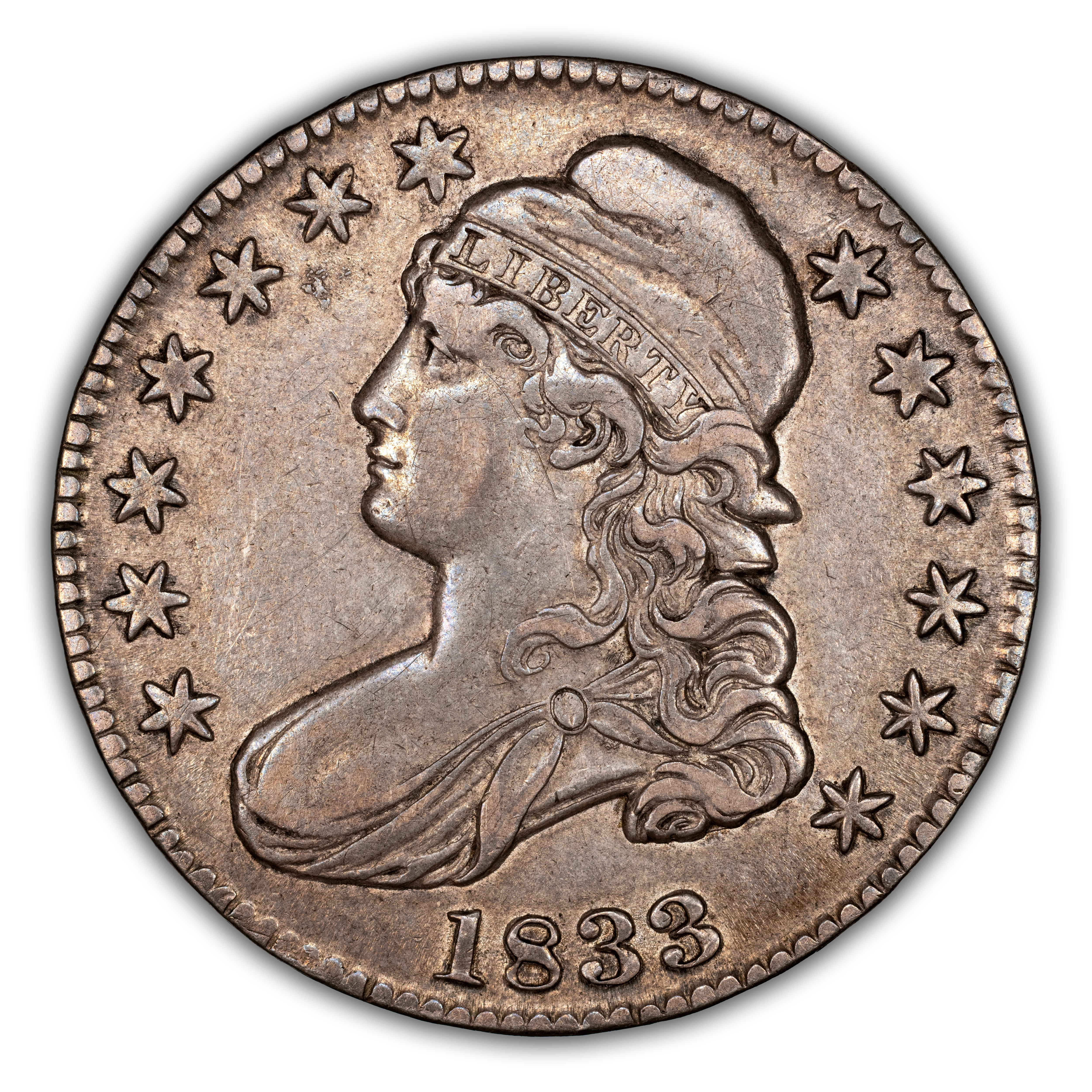 1833 50C O-105, R.2, AU53 PCGS. PCGS Population: (1/9). NGC Census: (3/15). Mintage 5,206,000.From The Southeast Kan...