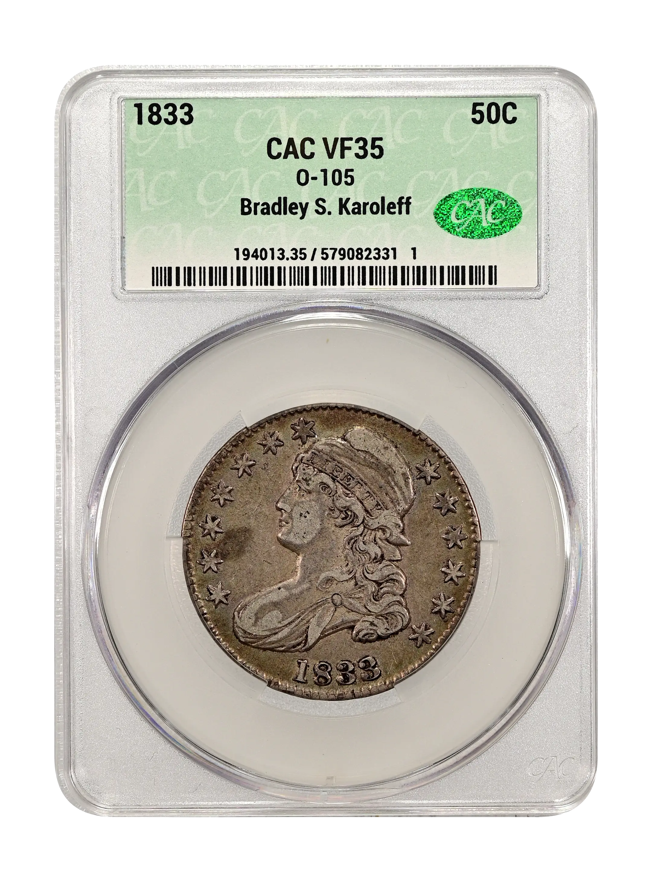 1833 O-105 50c CAC VF35