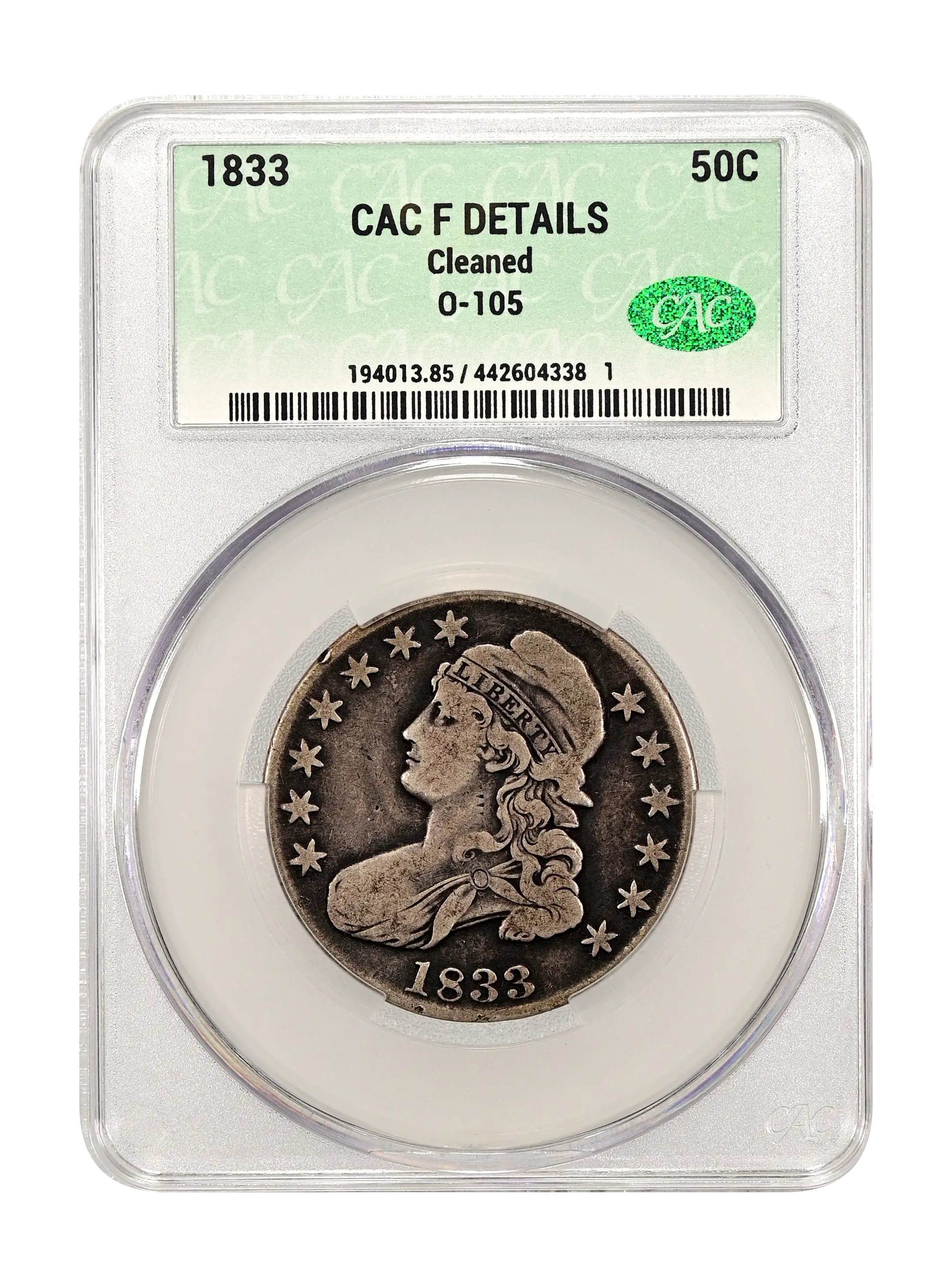 1833 O-105 50c CAC F DETAILS