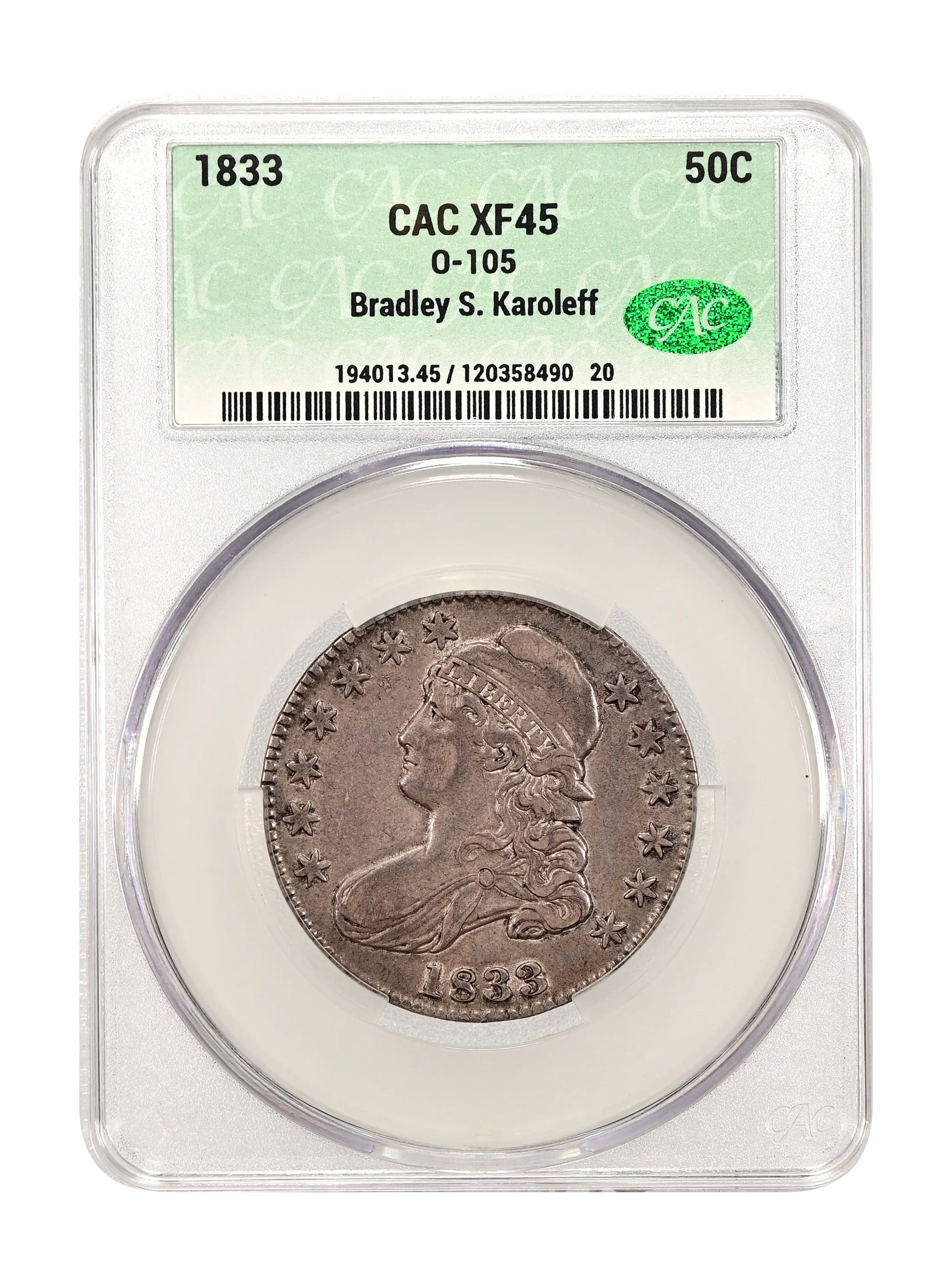 1833 O-105 50c CAC XF45