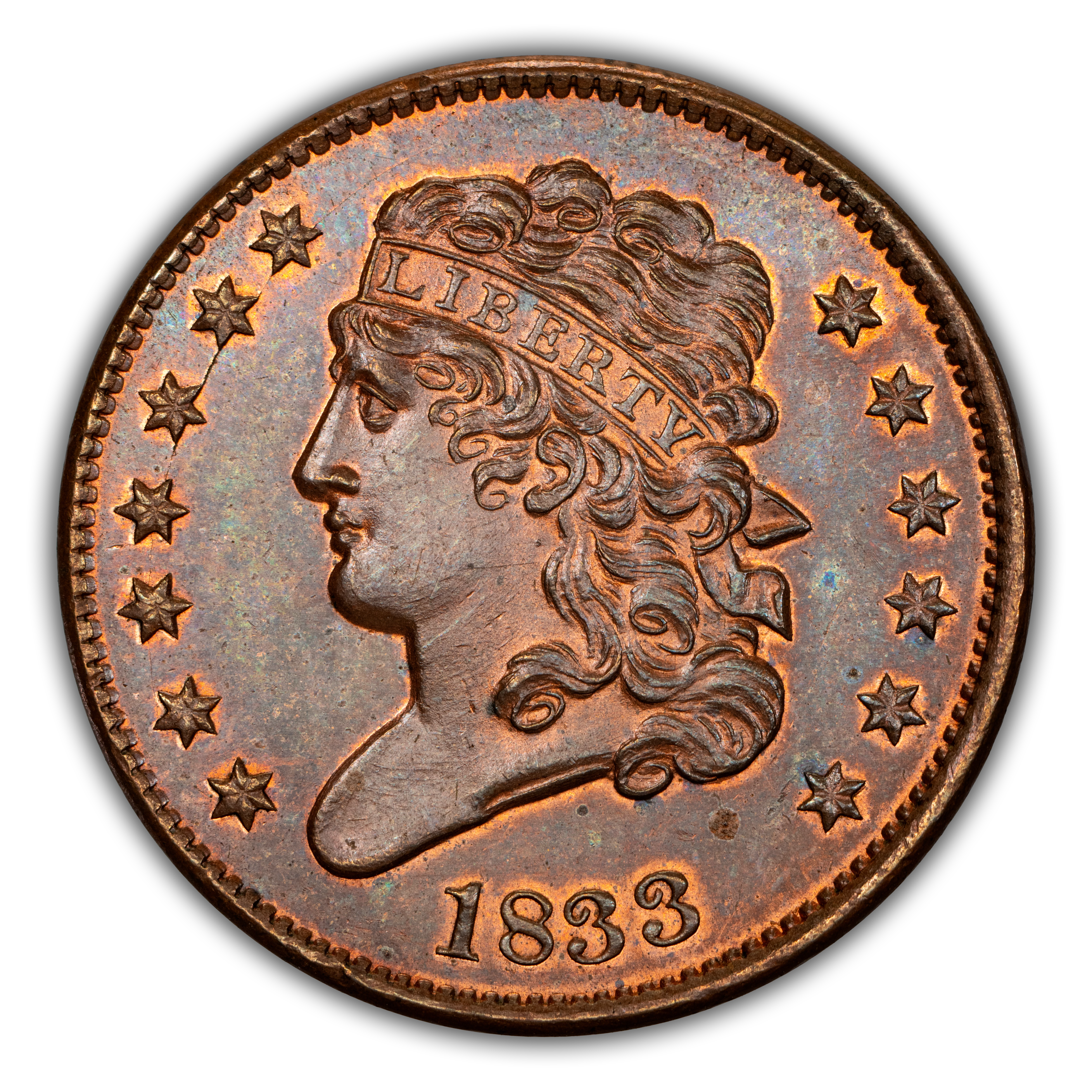 The 1833 Proof Half Cent is one of the issues of the Classic Head design,