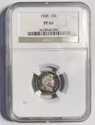 Reverse: An eagle is centered in the design with a shield over its chest, holding arrows and olive branches in its talons. A ribbon above bears the motto E PLURIBUS UNUM with UNITED STATES OF AMERICA around the periphery. The denomination listed as "10 C." appears at the bottom.