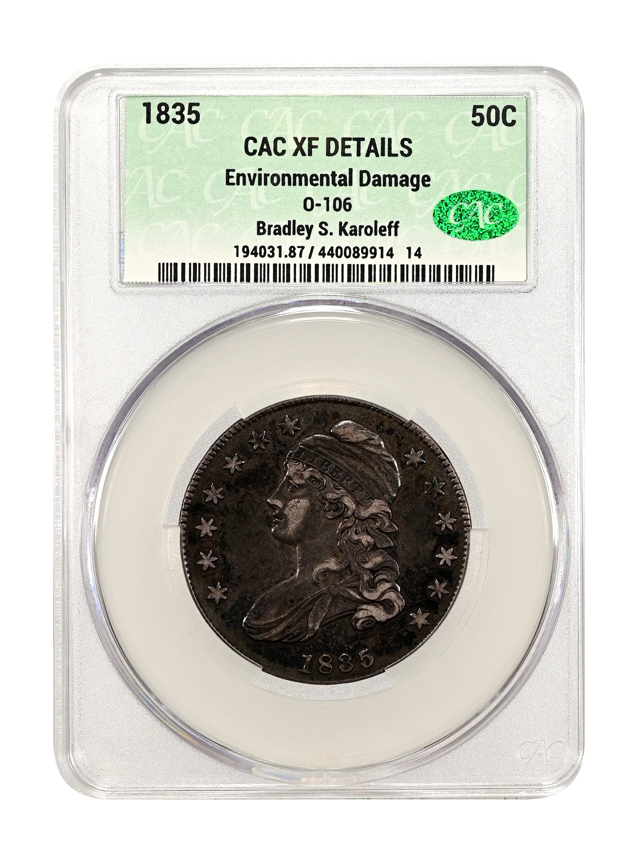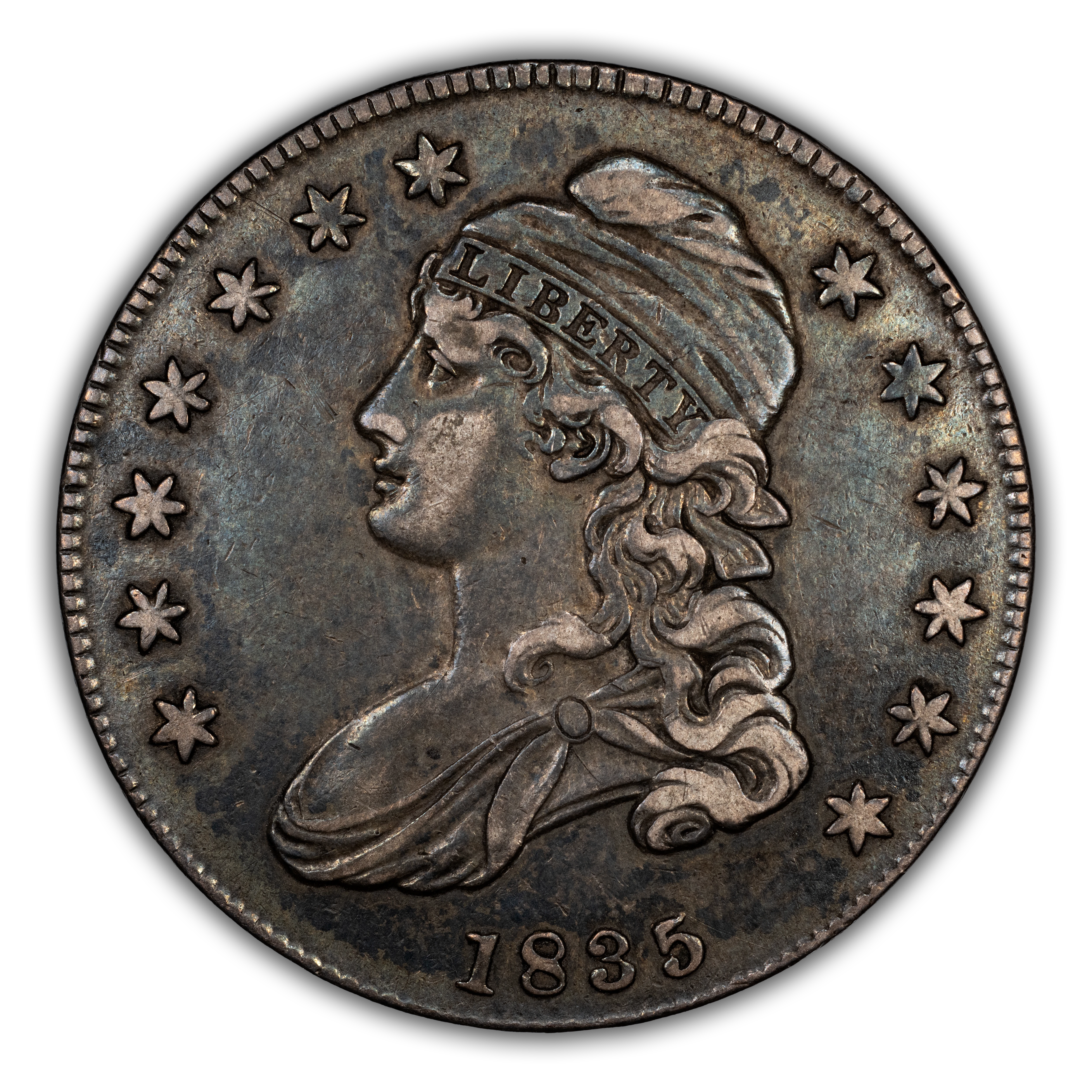 1835 50C O-106, R.1, XF40 PCGS. PCGS Population (2/9). NGC Census: (2/29). Mintage: 5,352,006. ...