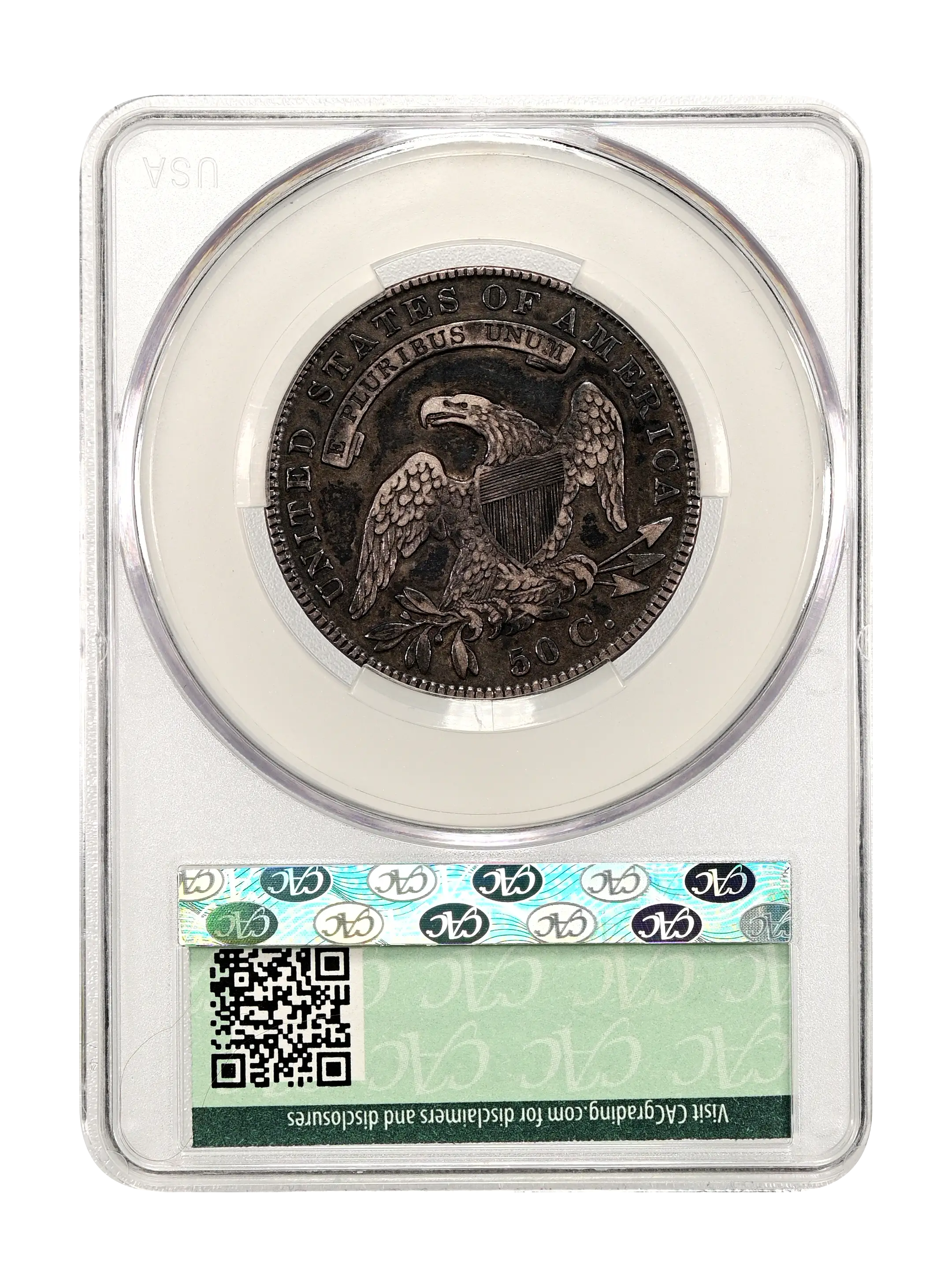 1835 50C O-106, R.1, AU58 PCGS. CAC. PCGS Population: (2/2). NGC Census: (9/7). AU58. Mintage 5,352,006. From The Mer...