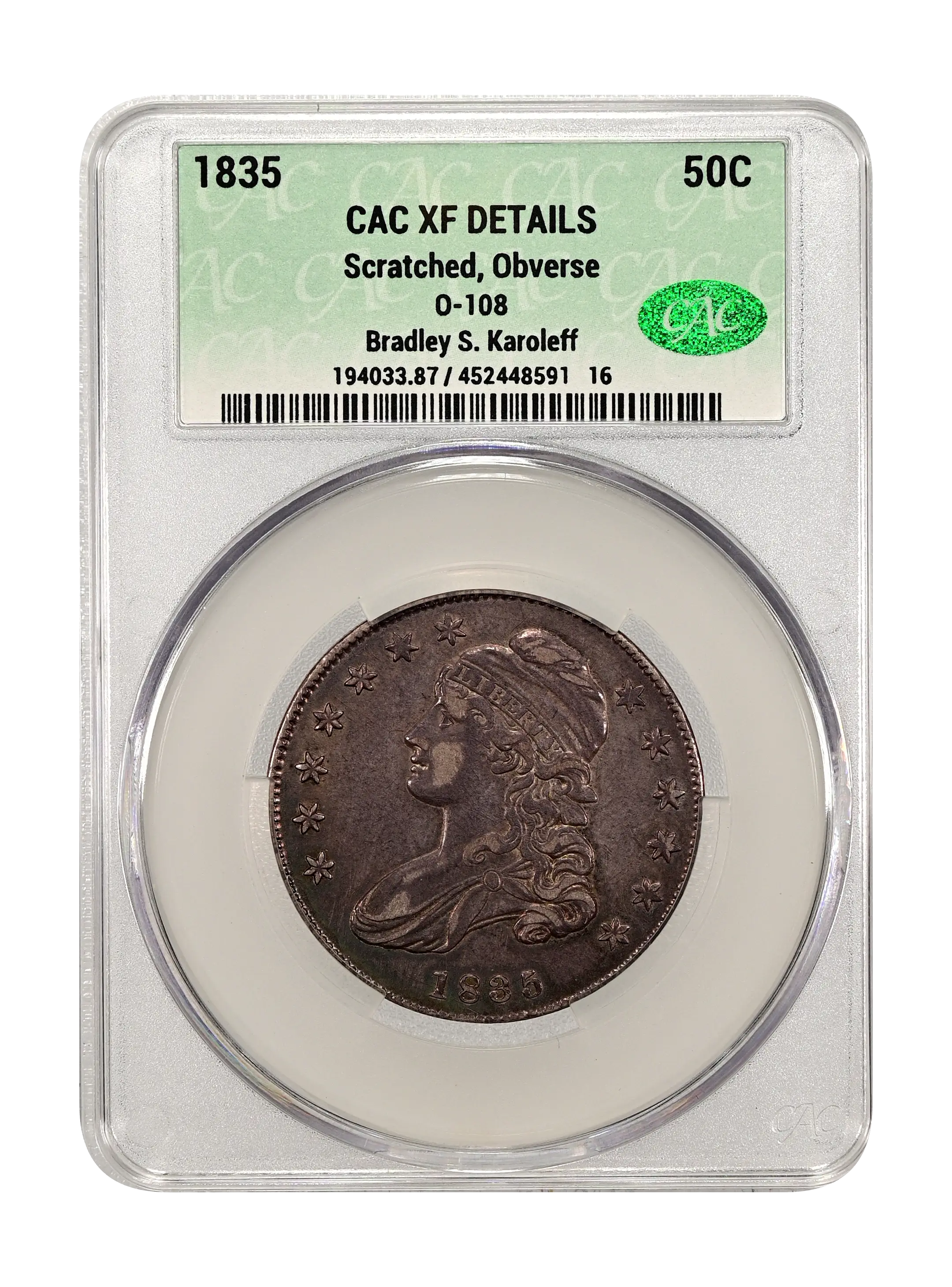 1835 O-108 50c CAC XF DETAILS