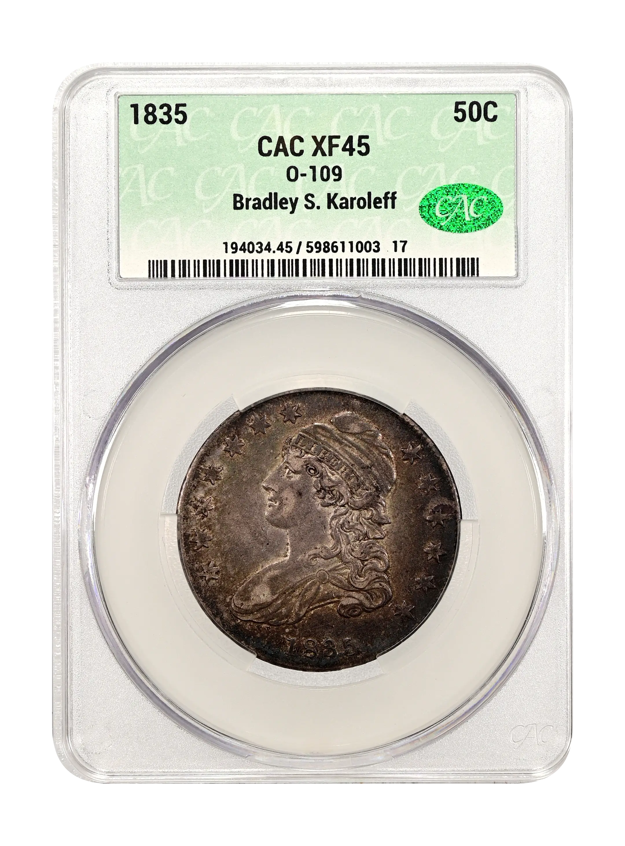 1835 50C O-109, R.2, XF40 PCGS. PCGS Population: (5/17). NGC Census: (3/16). XF40. Mintage 5,352,006. ...