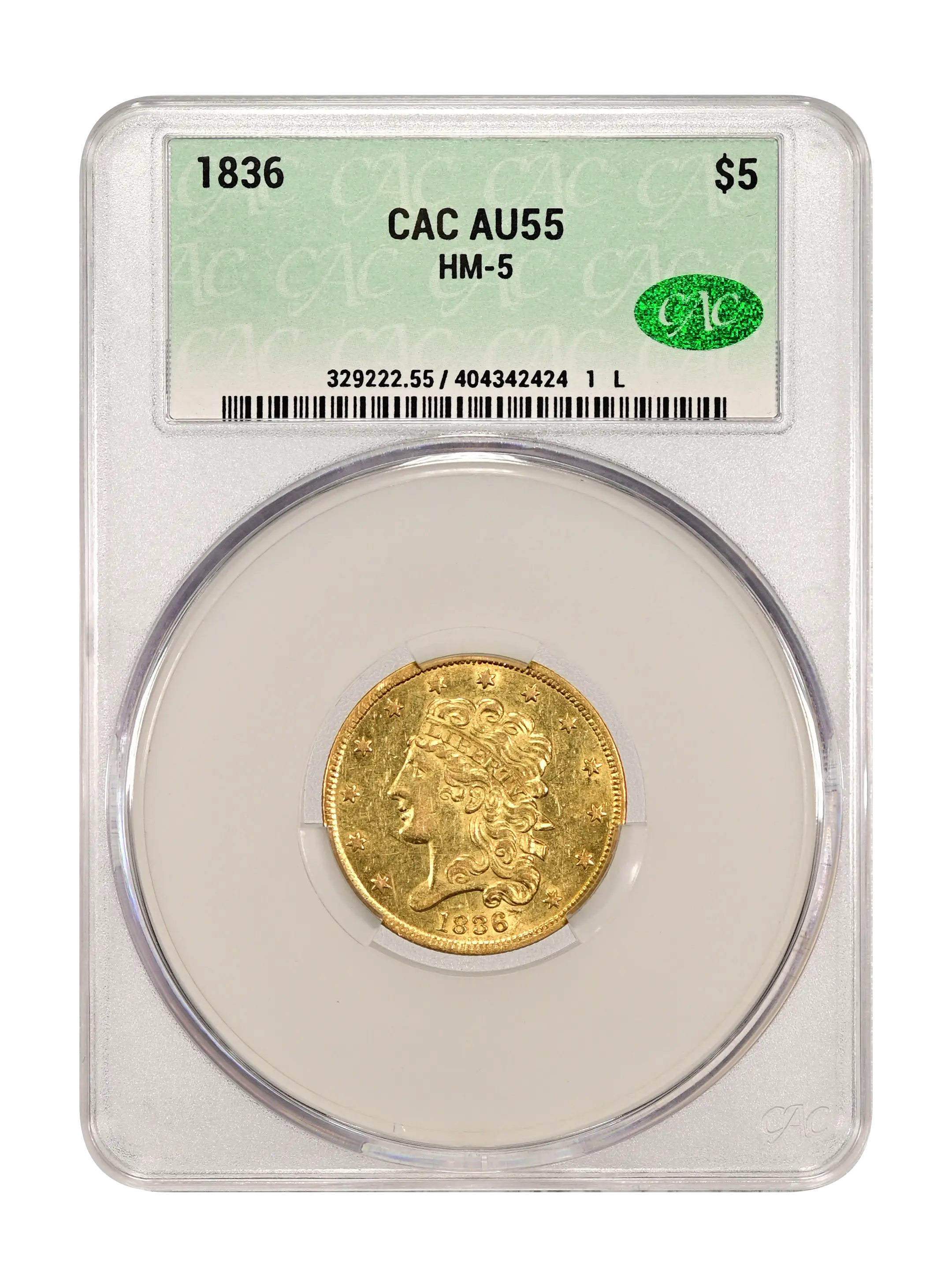 1836 $5 HM-5, Low R.5, XF45 NGC. Mintage 553,147....