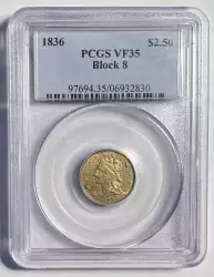 - 1836 $2 1/2 Script 8, HM-5 MS