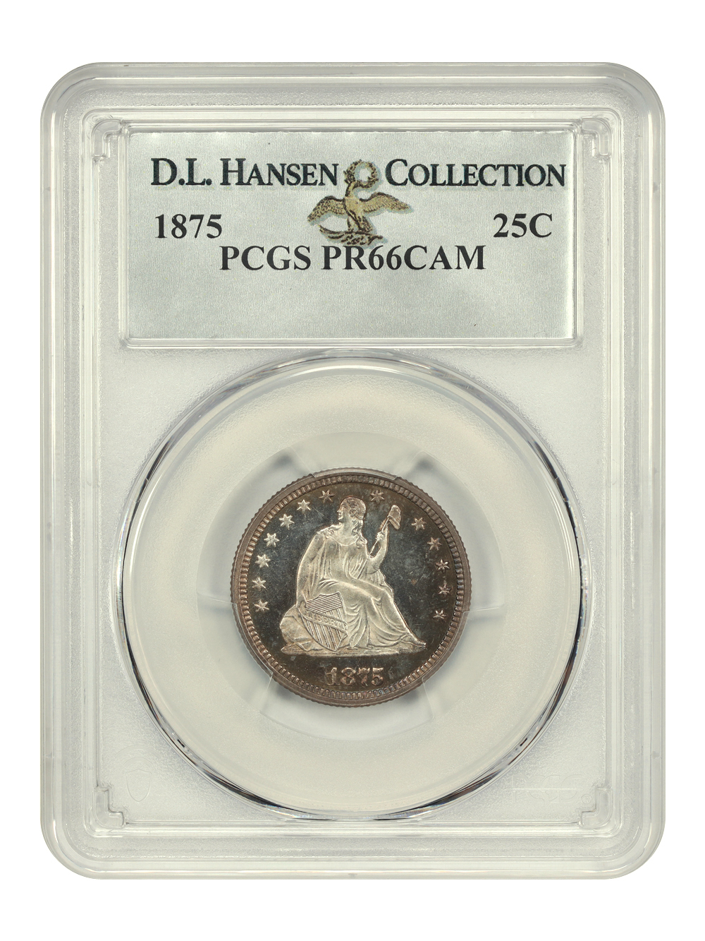 Reverse: The centerpiece of the reverse is the so-called "heraldic eagle" with wings fully spread and emblazoned with a shield replacing the chest. A ribbon bearing the motto E PLURIBUS UNUM hangs from the beak. The eagles right talon holds bundle of arrows and an olive branch in the right. Above the eagle's head are a group of stars and clouds with the words UNITED STATES OF AMERICA at the top periphery. The denomination of 25 C. appears at the bottom.