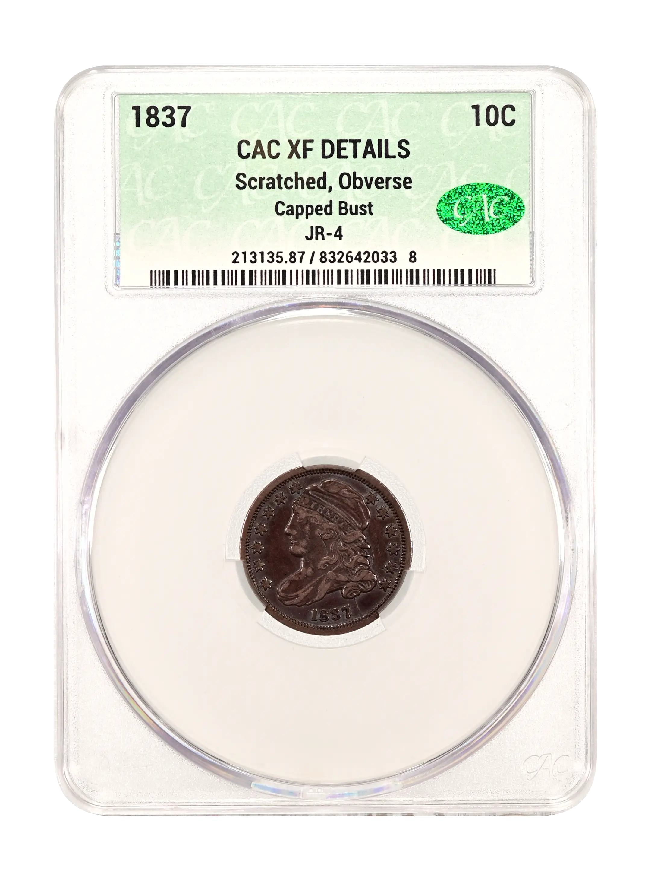 1837 Capped Bust 10c JR-4 CAC XF DETAILS