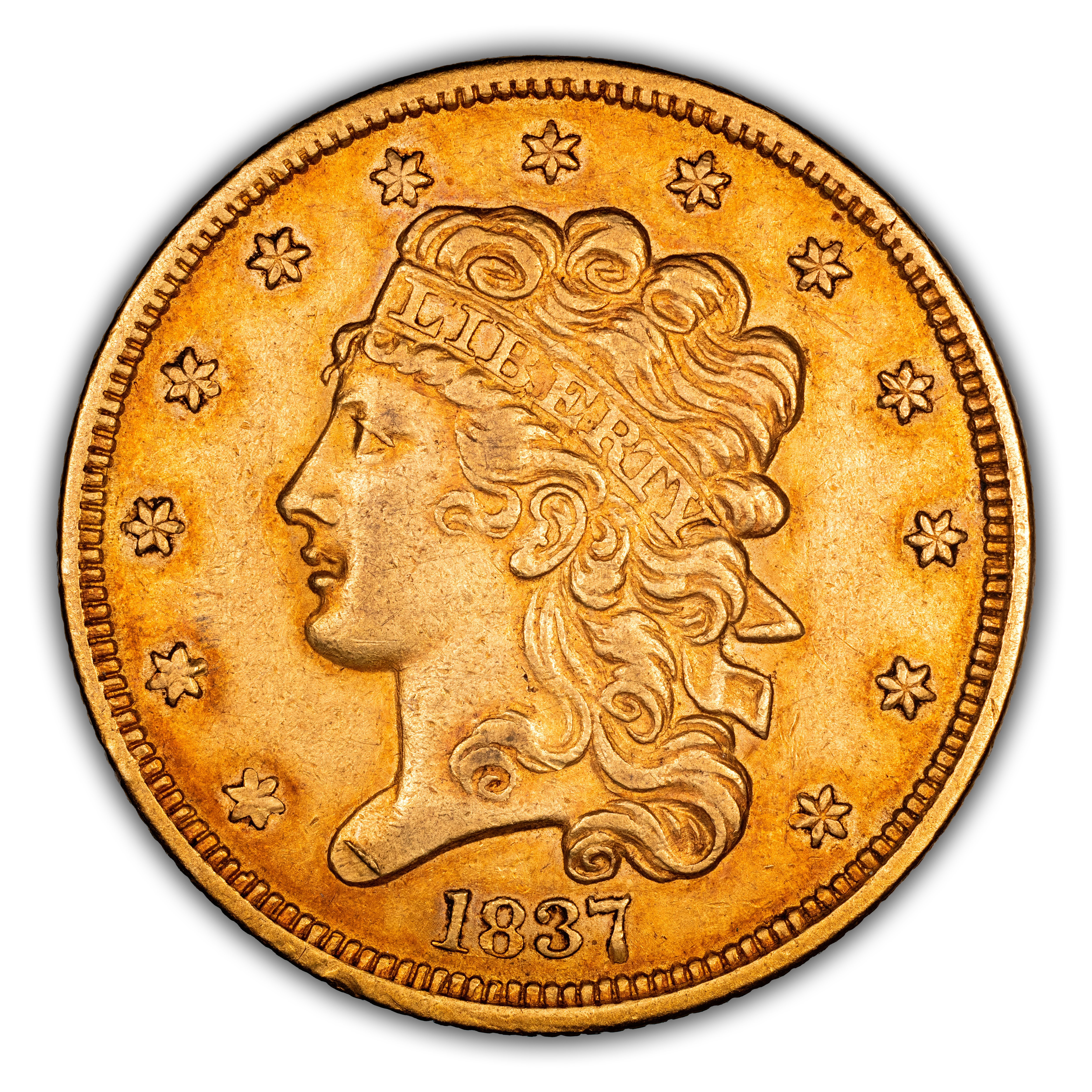 1837 Classic Head Half Eagle. McCloskey-2, Dies 2-B. Mint State-66+ (PCGS).