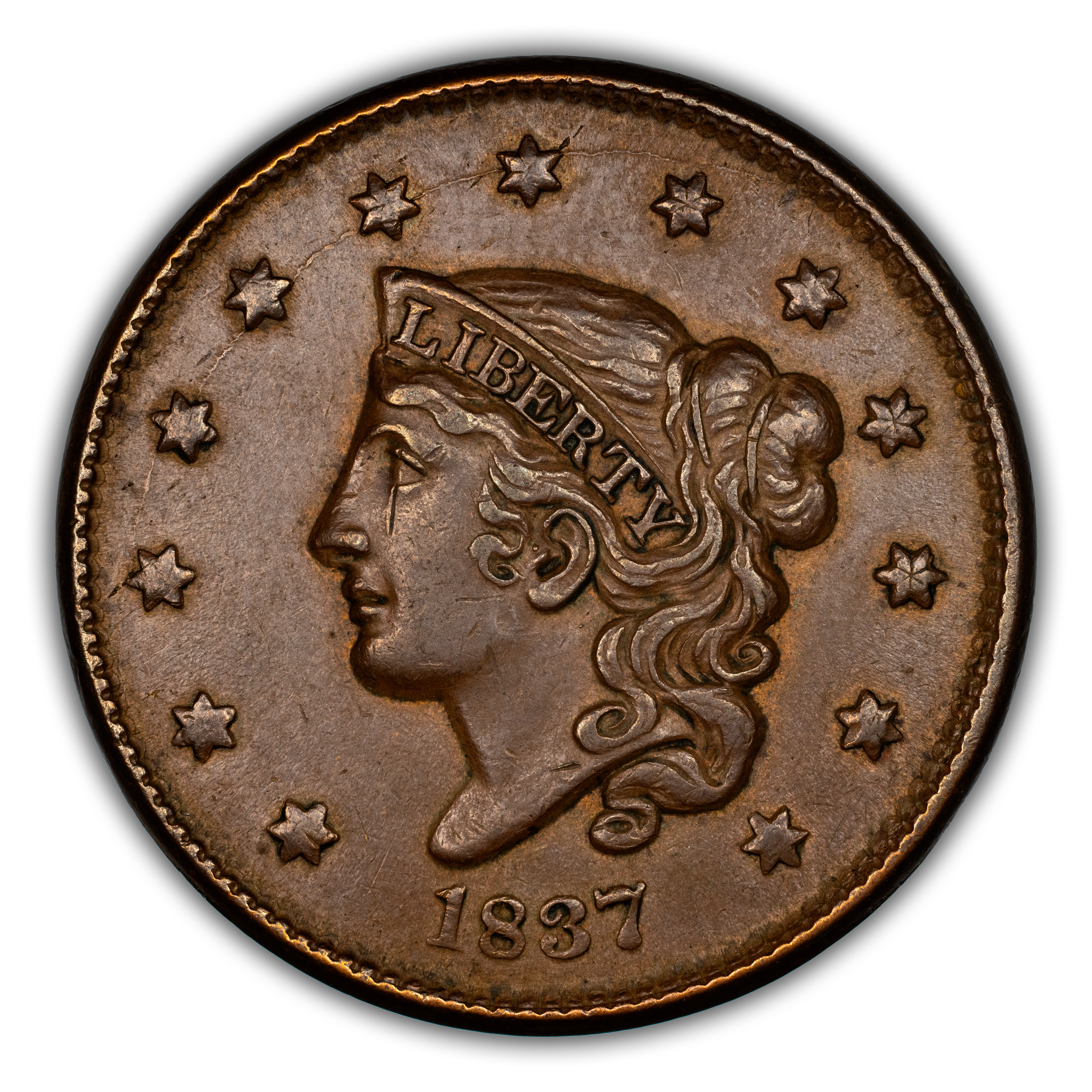 1837 1C Plain Cords, Medium Letters, N-4, R.2, MS66 Brown NGC....