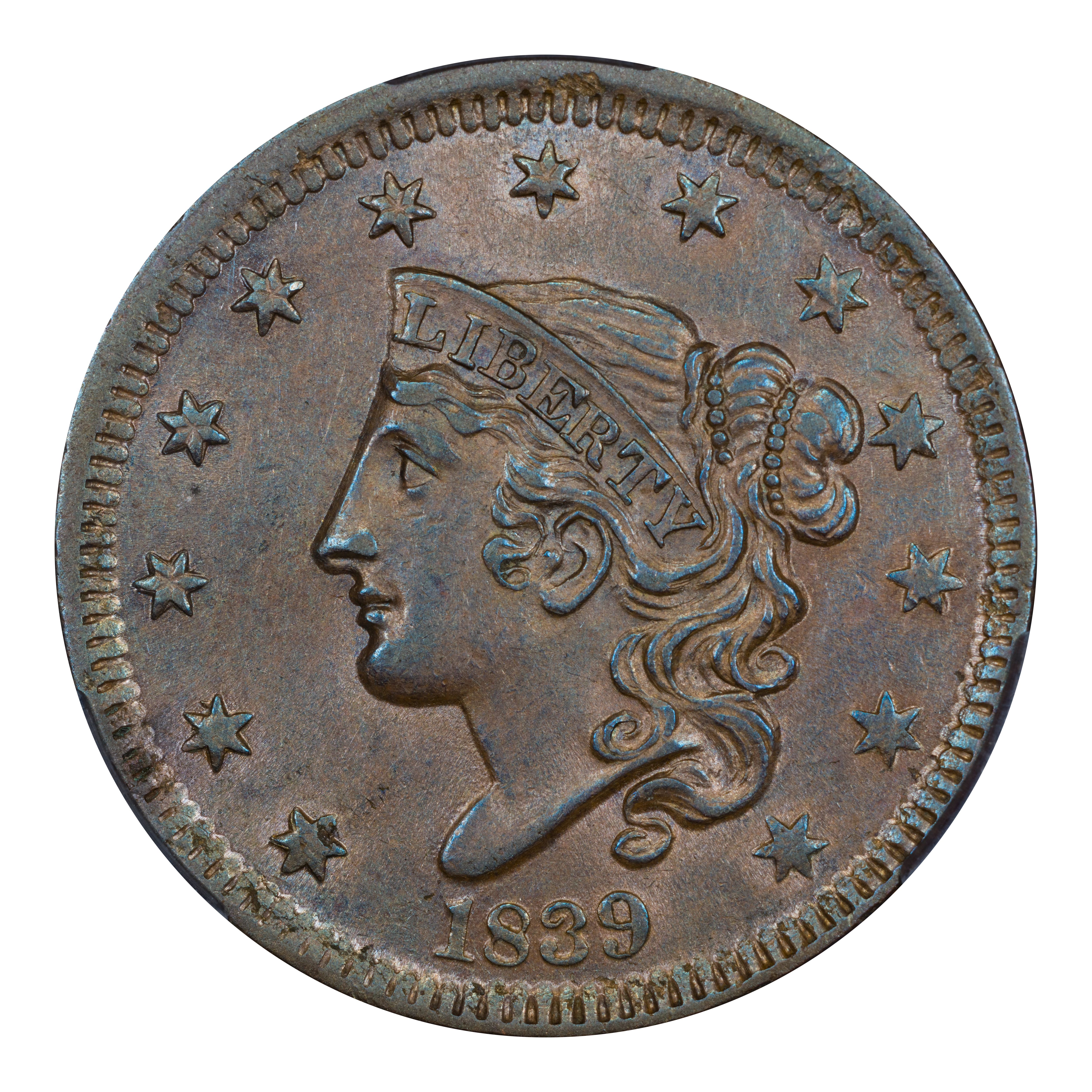 1839 1c PCGS/CAC AU53 (N-2, Head of 1838)