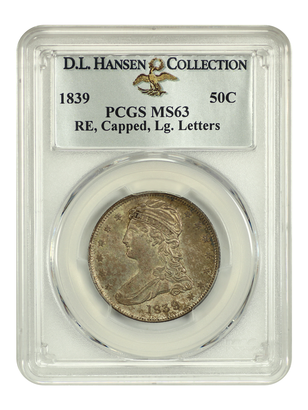 1839 50c Reeded Edge, Large Letters Reverse MS