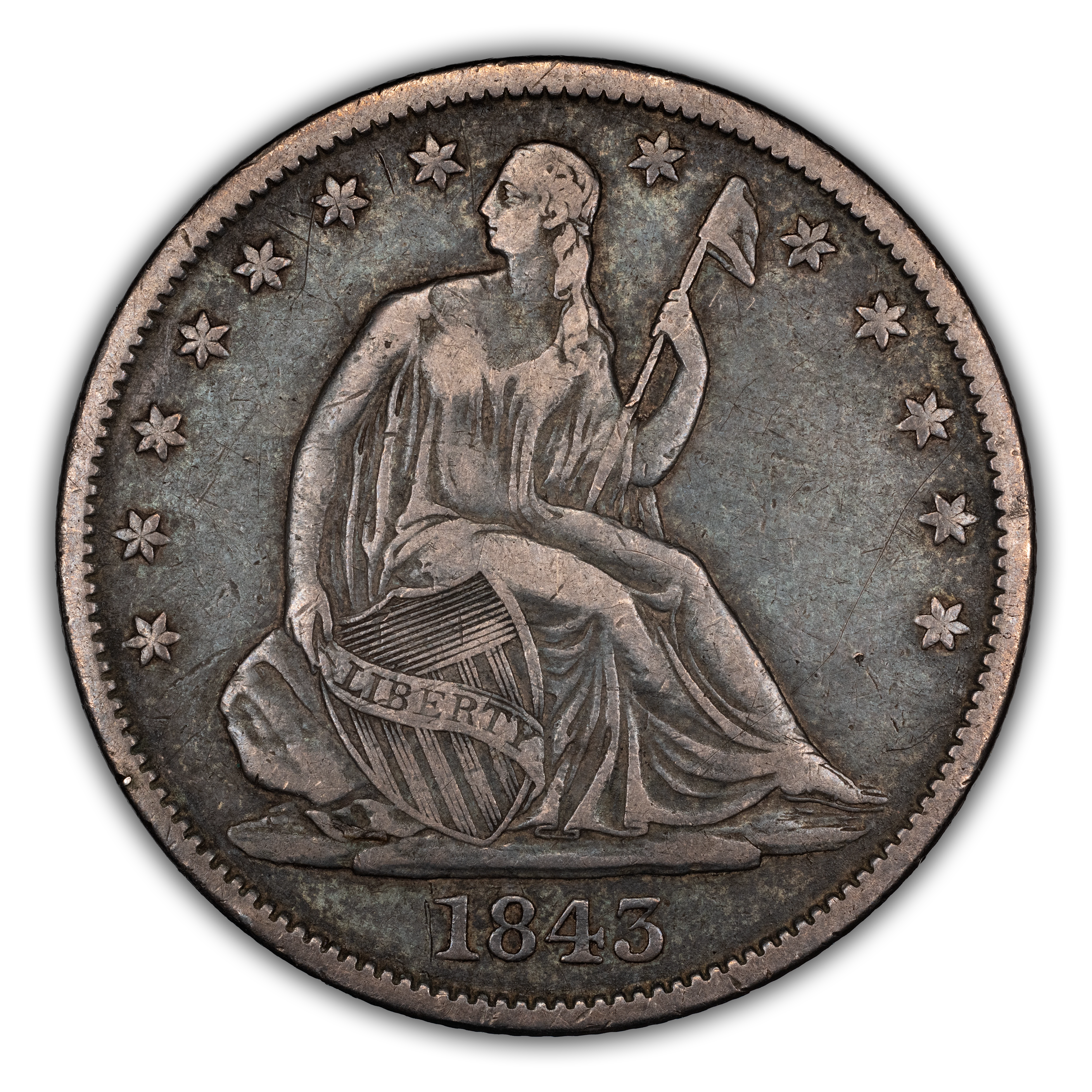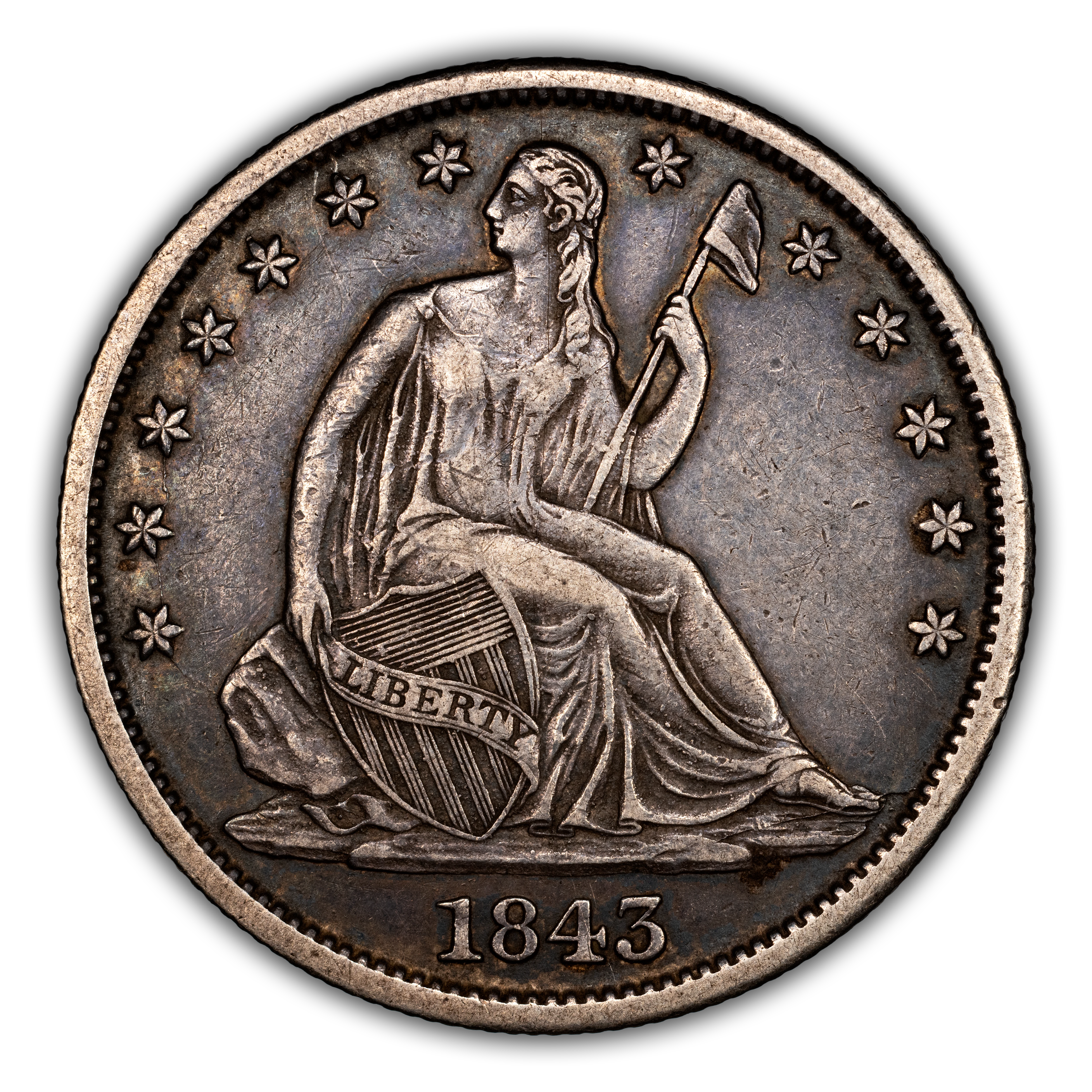 1843-O 50C AU53 PCGS. PCGS Population: (19/78 and 0/3+). NGC Census: (6/74 and 0/2+). CDN: $400 Whsle. Bid for NGC/PCGS AU5...