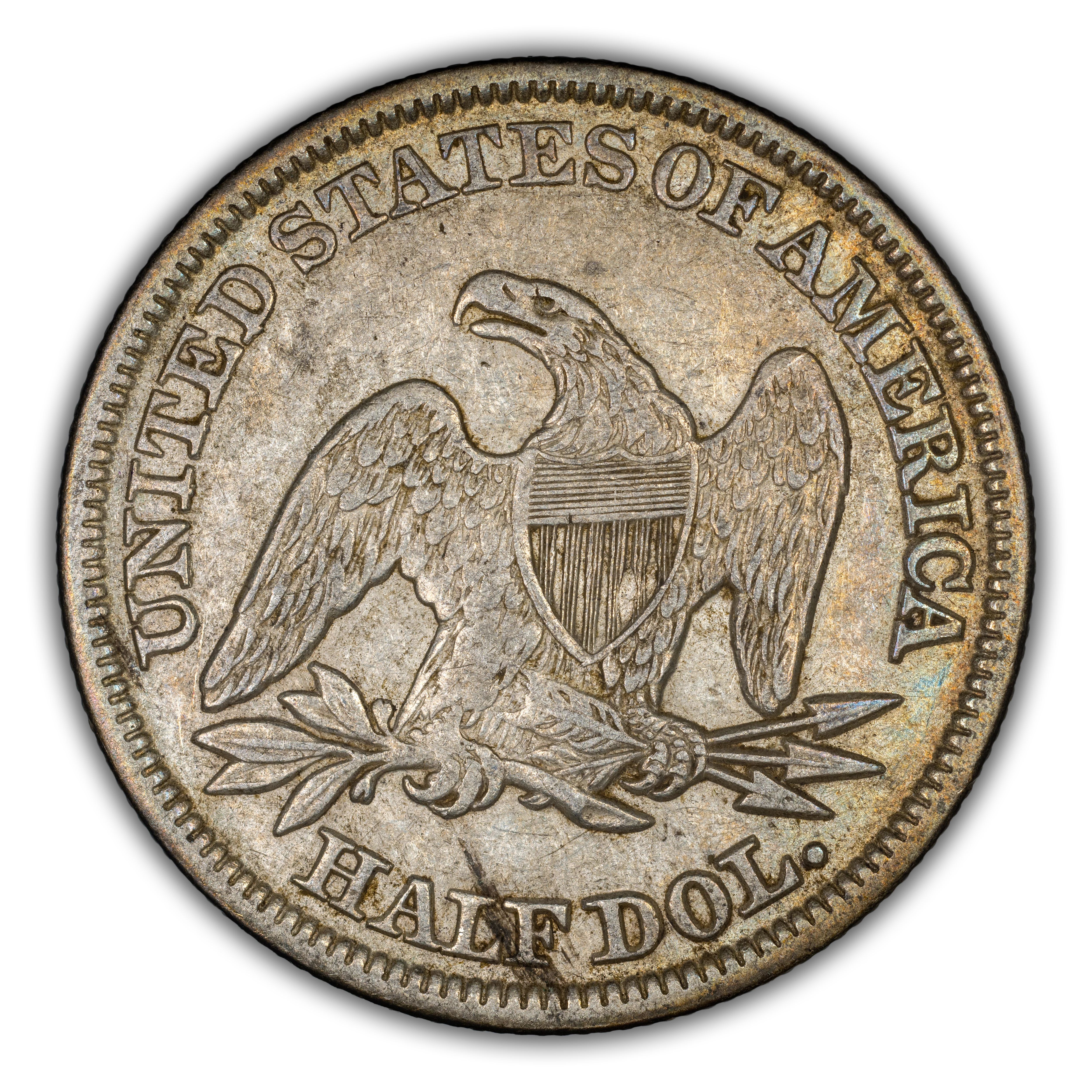 Reverse: The heraldic eagle is centered in the design with the words UNITED STATES OF AMERICA and HALF DOL. around the periphery.
