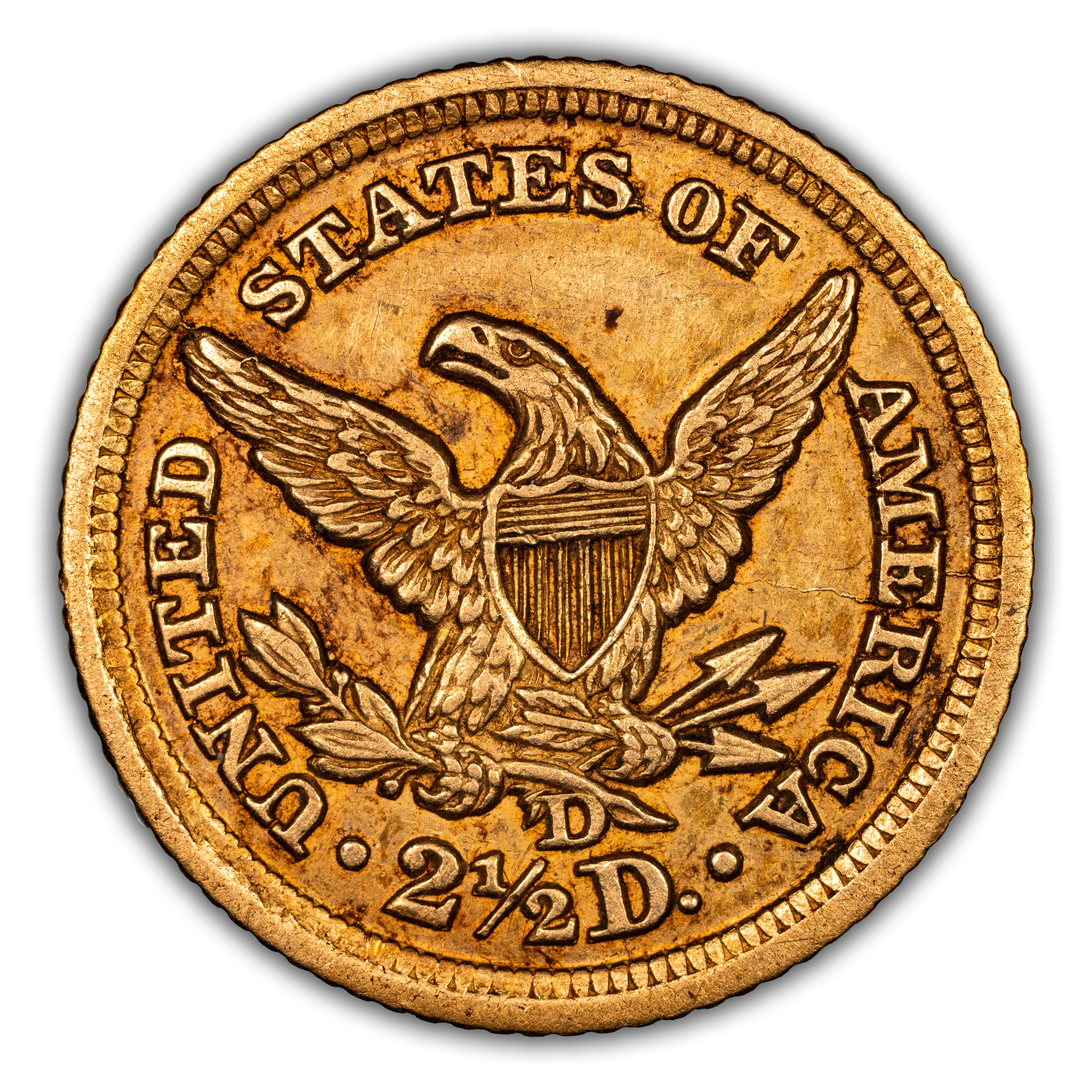 Reverse: Heraldic eagle holding arrows and branch in its claws is centered in the design with the words UNITED STATES OF AMERICA * @ 2 1/2 D. around the periphery. Mintmark (if any) is located under the eagle's claws.