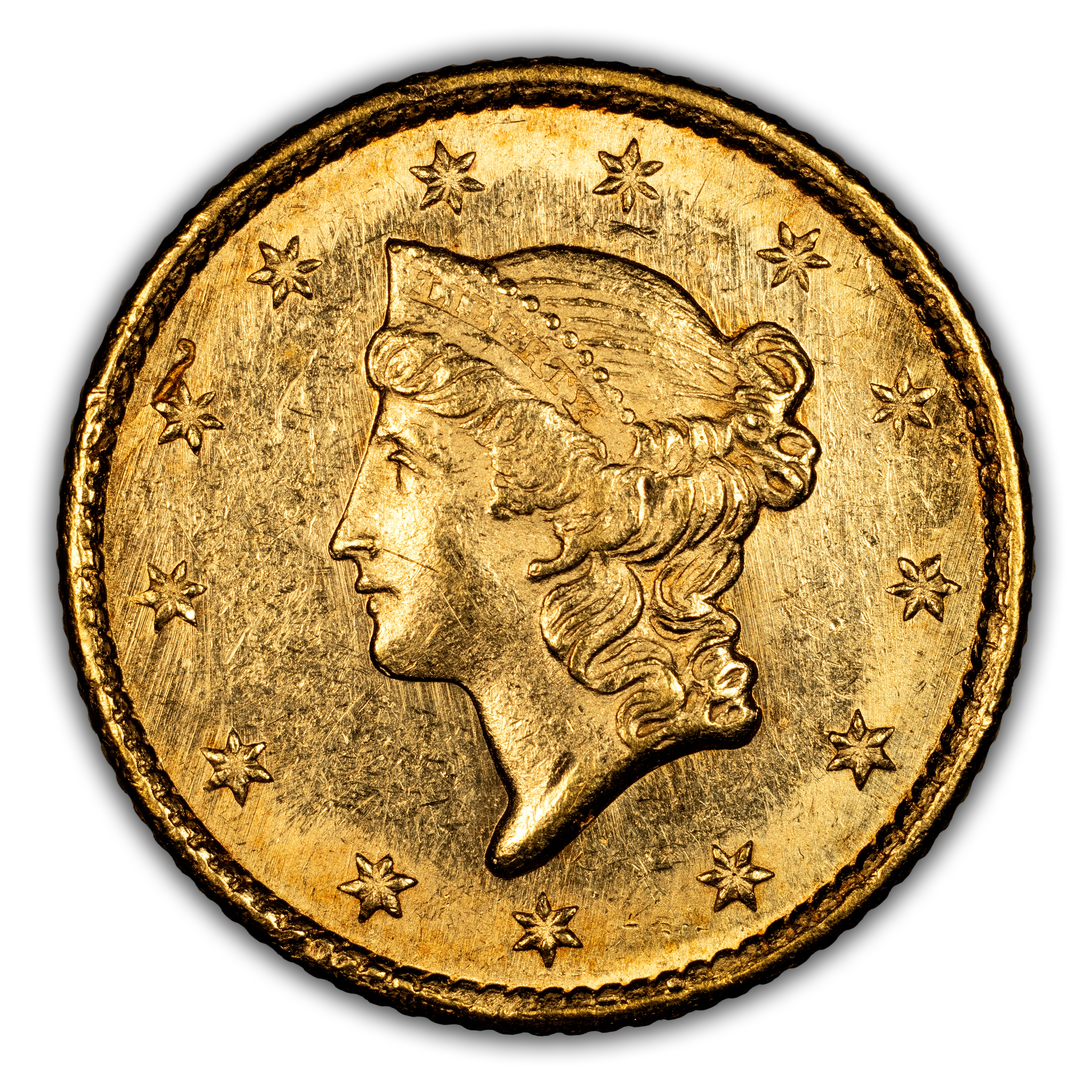 1849-C G$1 PCGS AU58 (Closed Wreath)