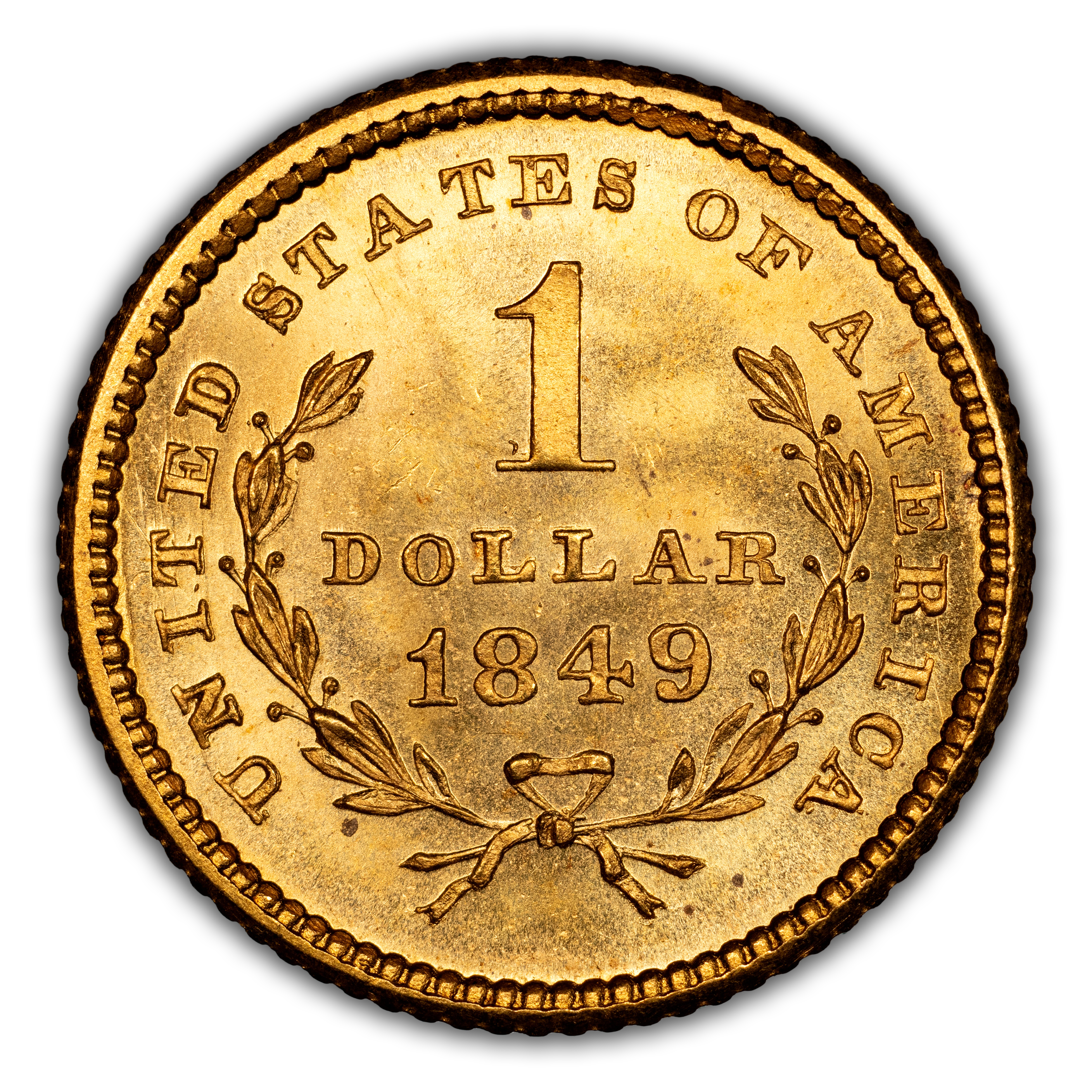 1849 G$1 No L, D-1, MS64 PCGS. PCGS Population: (76/52)....