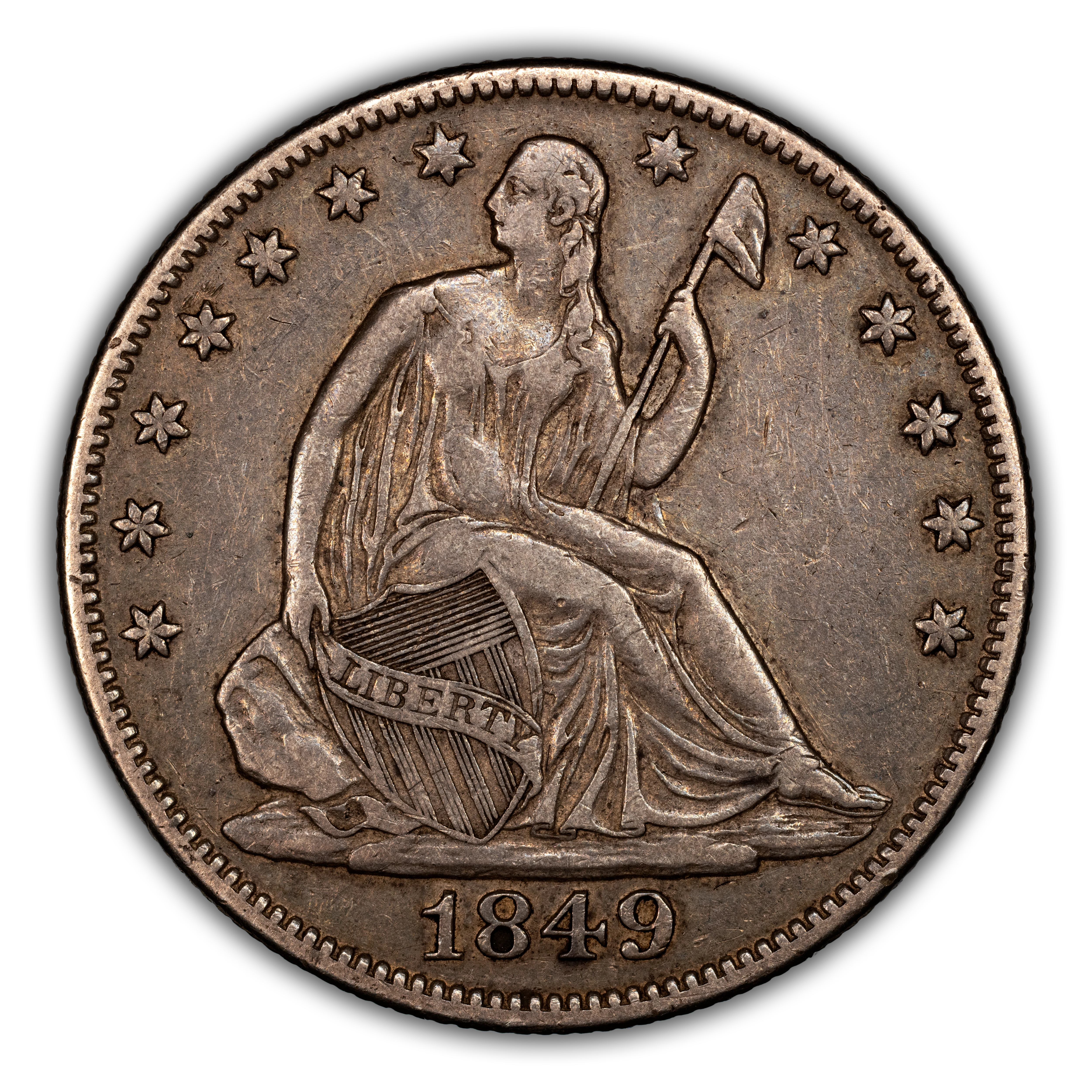 1849-O 50C XF40 PCGS. PCGS Population: (26/124 and 0/1+). NGC Census: (3/71 and 0/0+). CDN: $285 Whsle. Bid for NGC/PCGS XF...