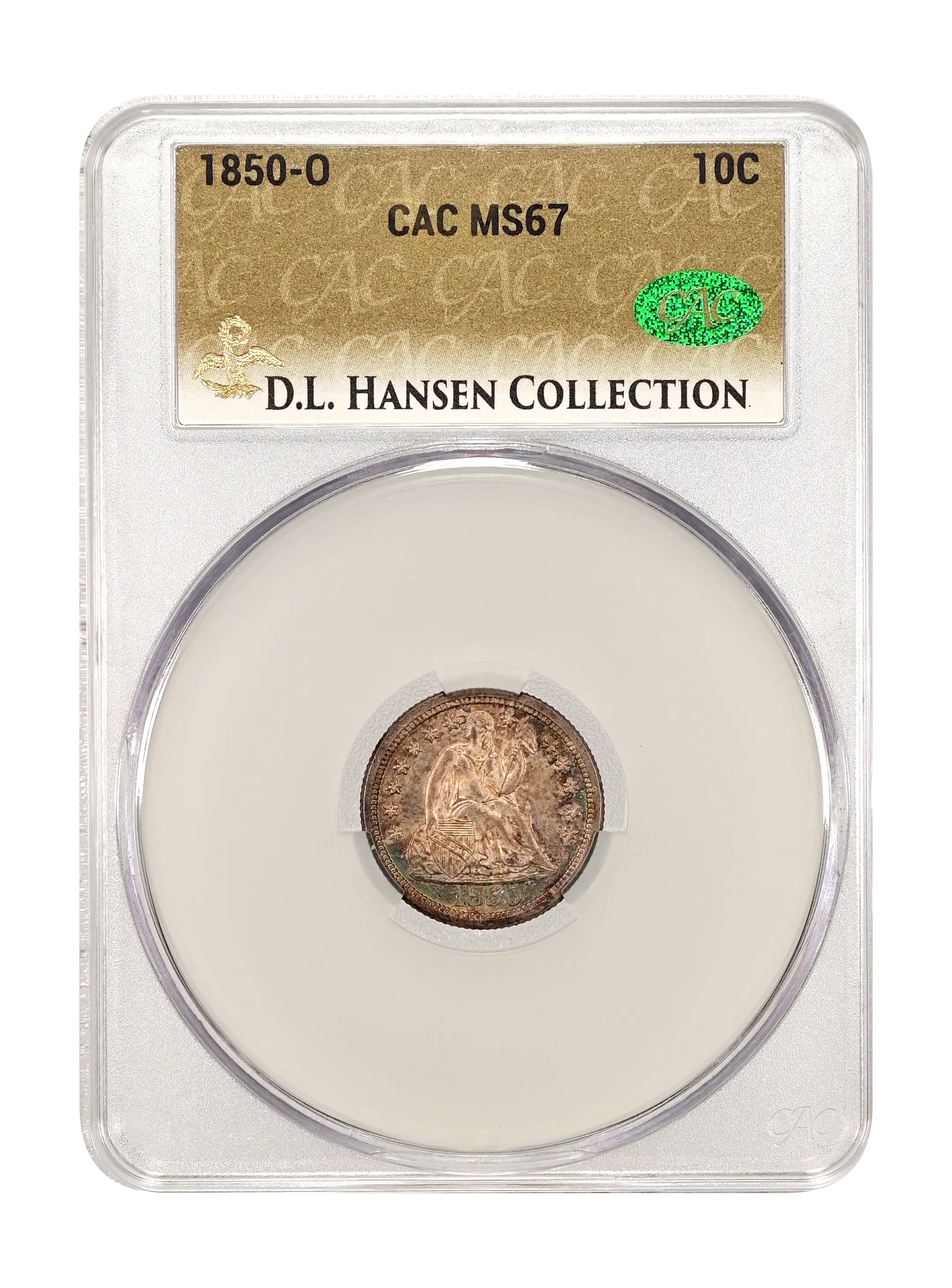 1850-O 10C MS67 PCGS Secure. CAC. Fortin-105....