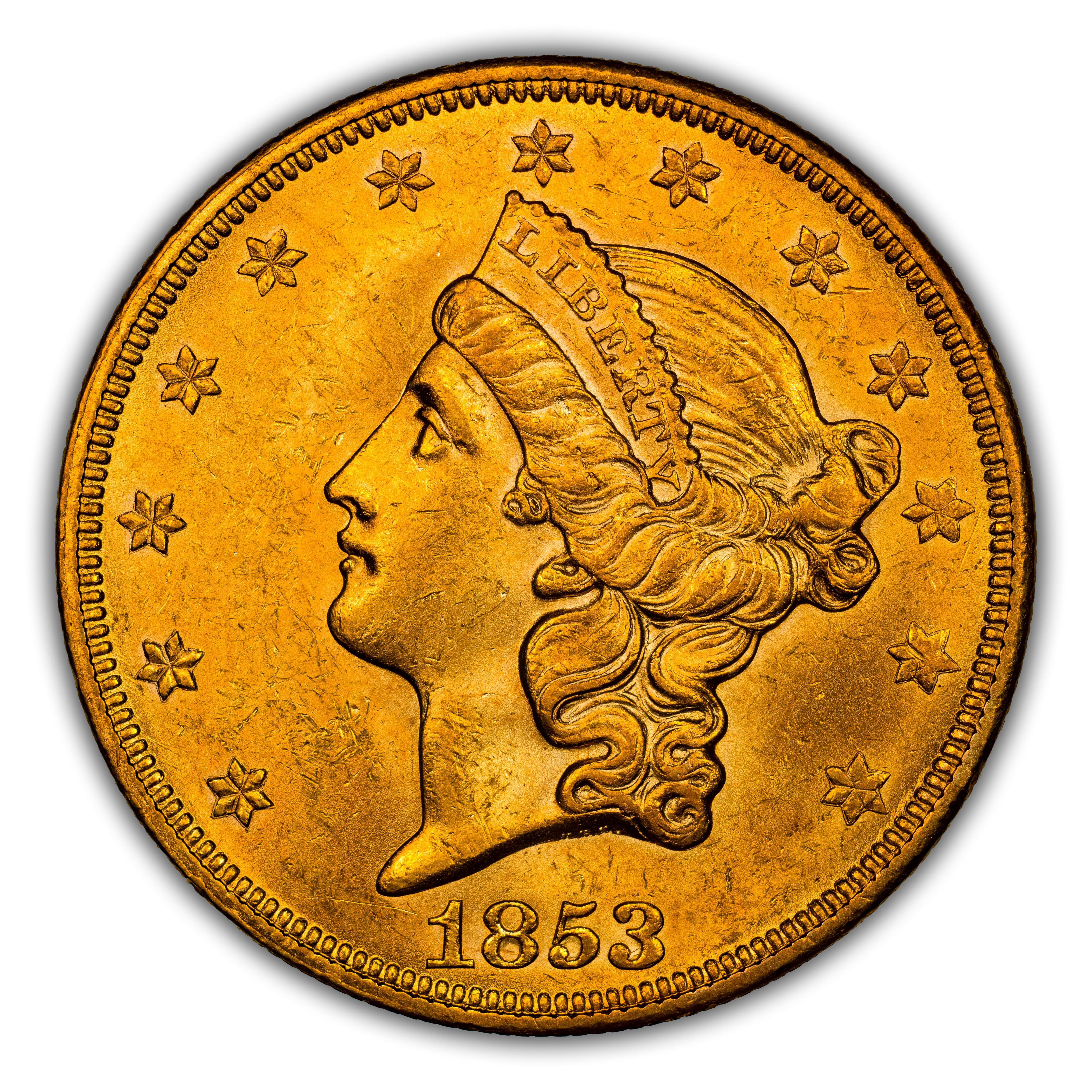 A die variety of the 1853 doubled eagle with the 3 in the date is punched over another digit. Researches were convinced this was a 2 for many years, but recent research has cast doubt on this fact, so we now aren't quite certain what digit is under the 3. Regardless, the variety is still interesting and collectible.