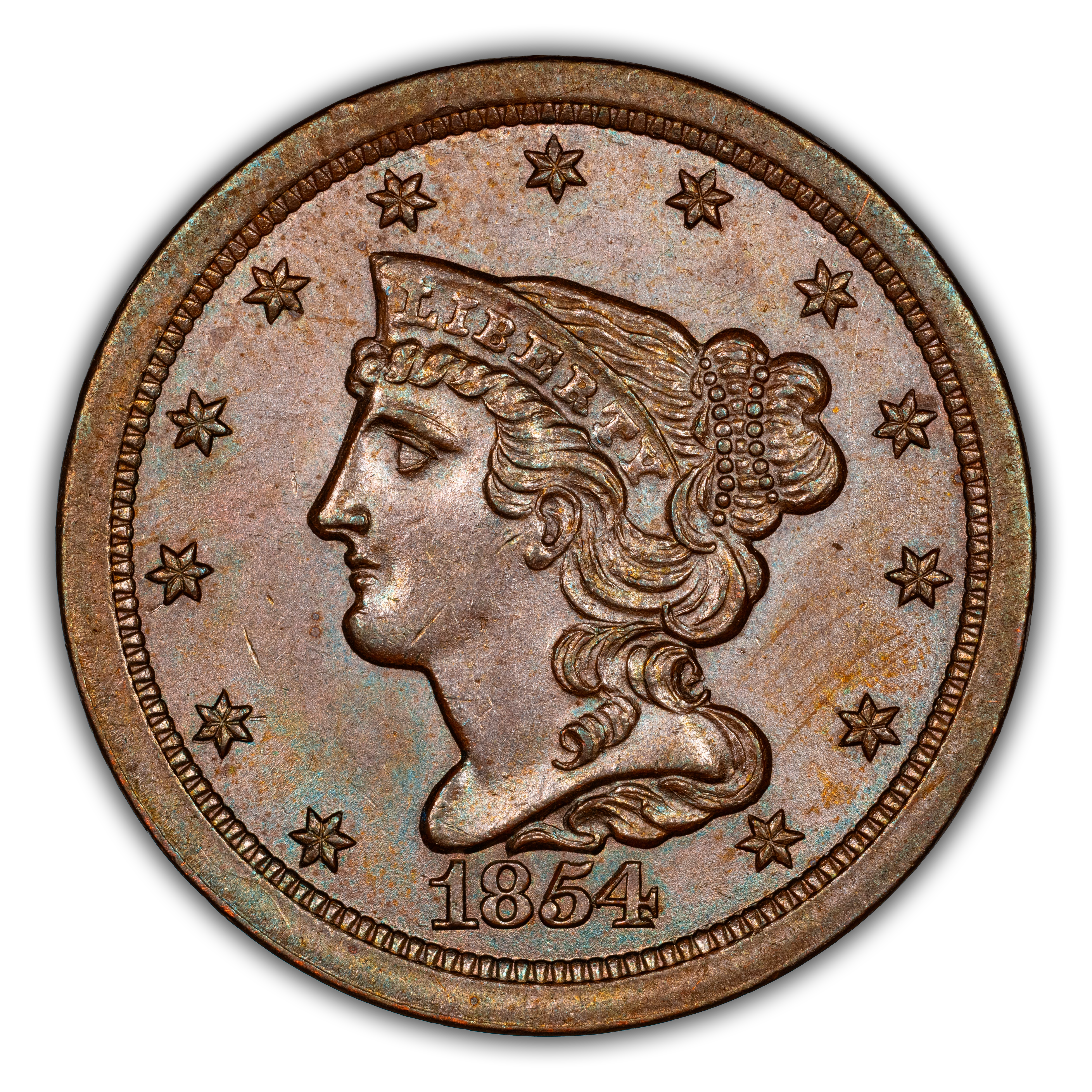 1854 1/2 C C-1, B-1, R.1, MS62 Brown NGC. Mintage 55,358. ...