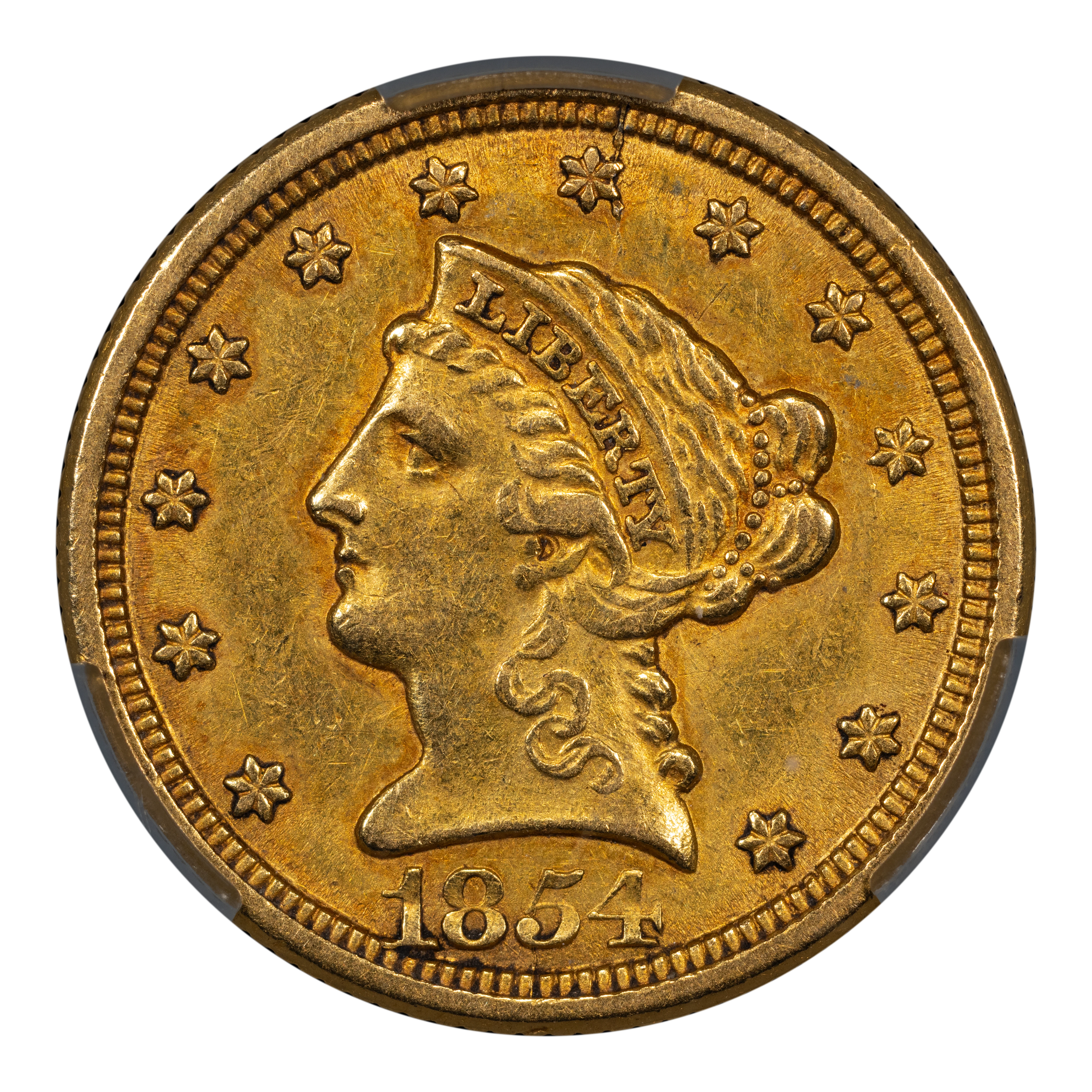 1854-O $2 1/2 PCGS AU58 - New Orleans Mint